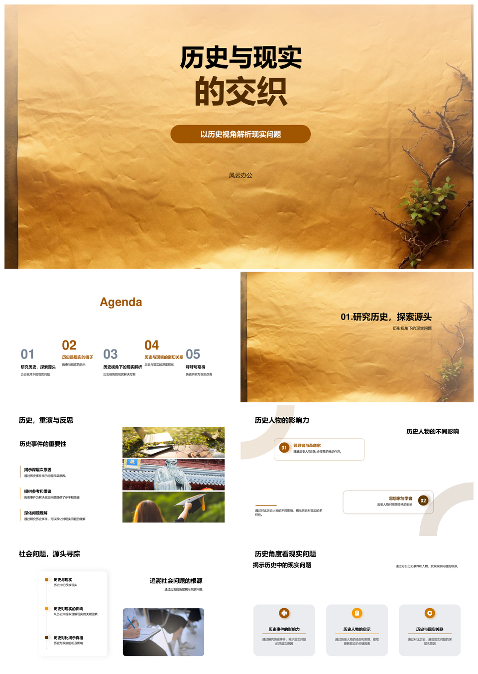 风云办公提供的历史卷轴映照现实图景PPT模板,下载格式为pptx,一共24页,作品中文字及图均可以修改和编辑,图片更改请在作品中右键图片并更换,文字修改请直接点击文字进行修改。