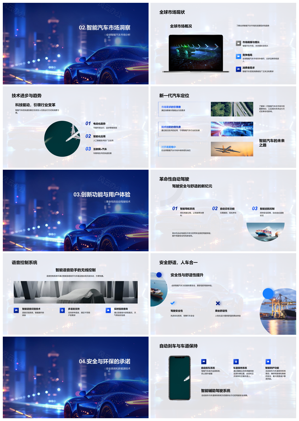 这是一张智能汽车产品发布自动驾驶语音控制安全新能源趋势PPT模板,包含智能汽车、产品、发布、自动驾驶、语音控制、安全、新能源、趋势等主题内容,也可用作智能汽车产品发布自动驾驶语音控制安全新能源趋势、智能汽车自动驾驶语音控制安全新能源趋势、产品发布自动驾驶语音控制安全新能源、发布自动驾驶语音控制安全新能源趋势、智能汽车产品自动驾驶语音控制安全、产品发布语音控制安全新能源趋势、自动驾驶语音控制安全新能源趋势、智能汽车产品发布新能源趋势、产品发布自动驾驶语音控制、自动驾驶语音控制安全新能源、智能汽车自动驾驶语音控制、语音控制安全新能源趋势、产品发布新能源趋势、自动驾驶语音控制、新能源趋势等PPT场景使用。 风云办公提供的智能汽车产品发布自动驾驶语音控制安全新能源趋势PPT模板,下载格式为pptx,一共24页,作品中文字及图均可以修改和编辑,图片更改请在作品中右键图片并更换,文字修改请直接点击文字进行修改。