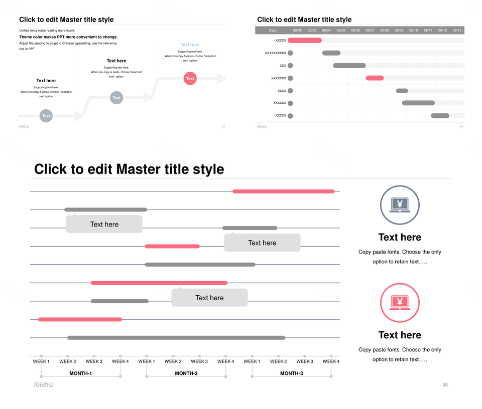 风云办公提供的商务简约风扁平工作汇报PPT模板,下载格式为pptx,一共31页,作品中文字及图均可以修改和编辑,图片更改请在作品中右键图片并更换,文字修改请直接点击文字进行修改。