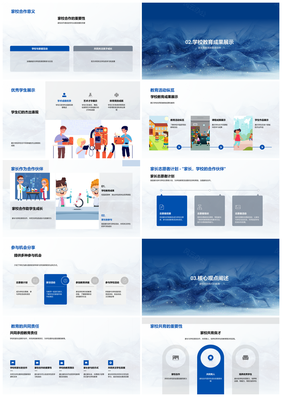 2025家校协作卓越教育理念成果师资设施合作PPT模板推荐