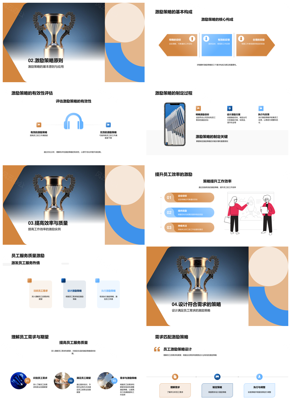 这是一张服务行业激励策略需求培训奖杯双效提升PPT模板,包含服务行业、激励策略、需求、培训、奖杯、双效提升等主题内容,也可用作服务行业激励策略需求培训、服务行业激励策略双效提升、激励策略需求培训奖杯、需求培训奖杯双效提升、服务行业需求培训奖杯、培训奖杯双效提升、服务行业激励策略需求、激励策略培训奖杯、服务行业奖杯双效提升、激励策略双效提升、服务行业需求培训、需求培训奖杯、培训双效提升、服务行业激励策略、奖杯双效提升等PPT场景使用。 风云办公提供的服务行业激励策略需求培训奖杯双效提升PPT模板,下载格式为pptx,一共21页,作品中文字及图均可以修改和编辑,图片更改请在作品中右键图片并更换,文字修改请直接点击文字进行修改。