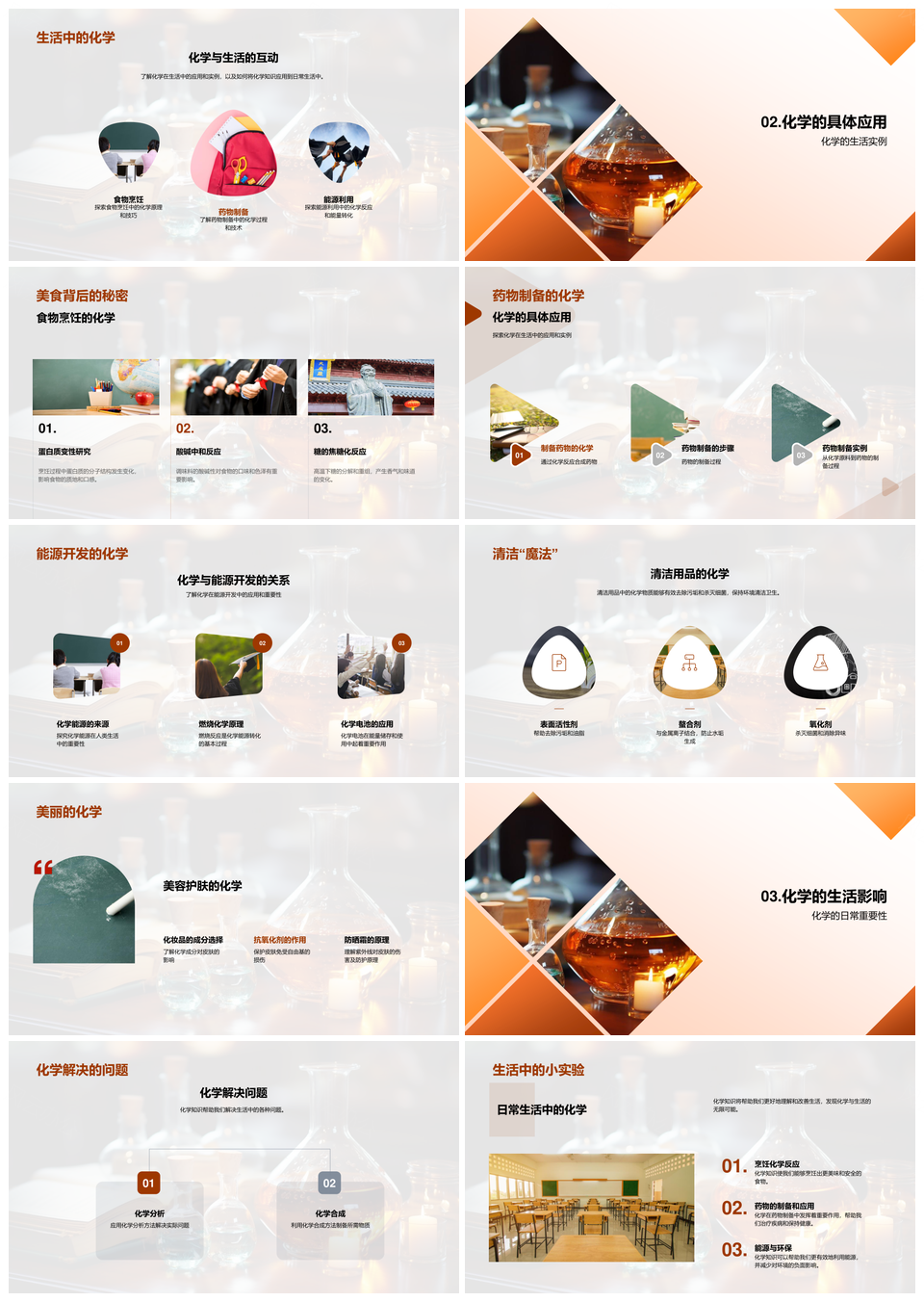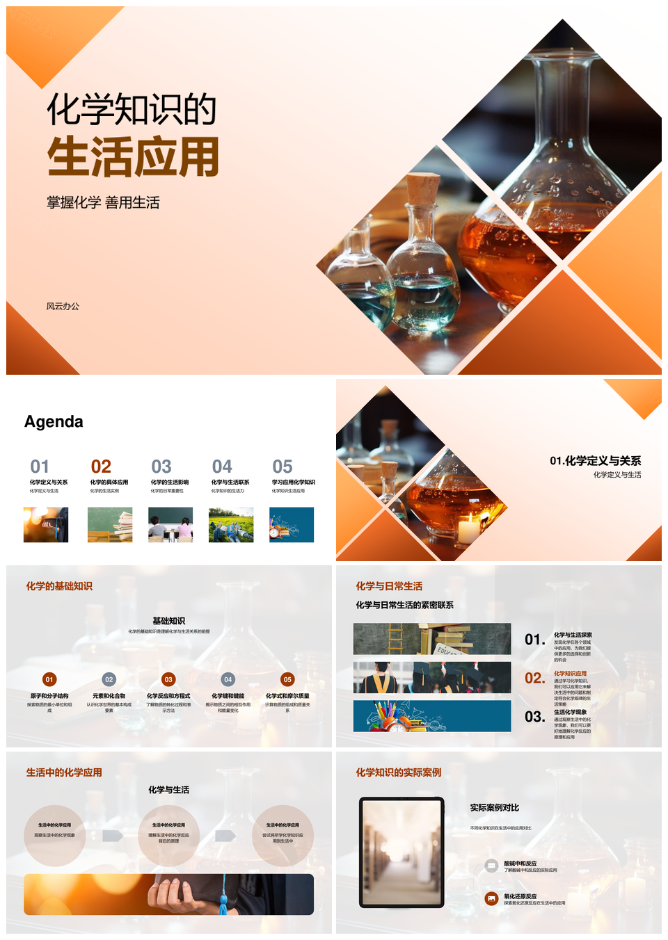 风云办公提供的化学与生活应用基本定义烧瓶PPT模板,下载格式为pptx,一共33页,作品中文字及图均可以修改和编辑,图片更改请在作品中右键图片并更换,文字修改请直接点击文字进行修改。