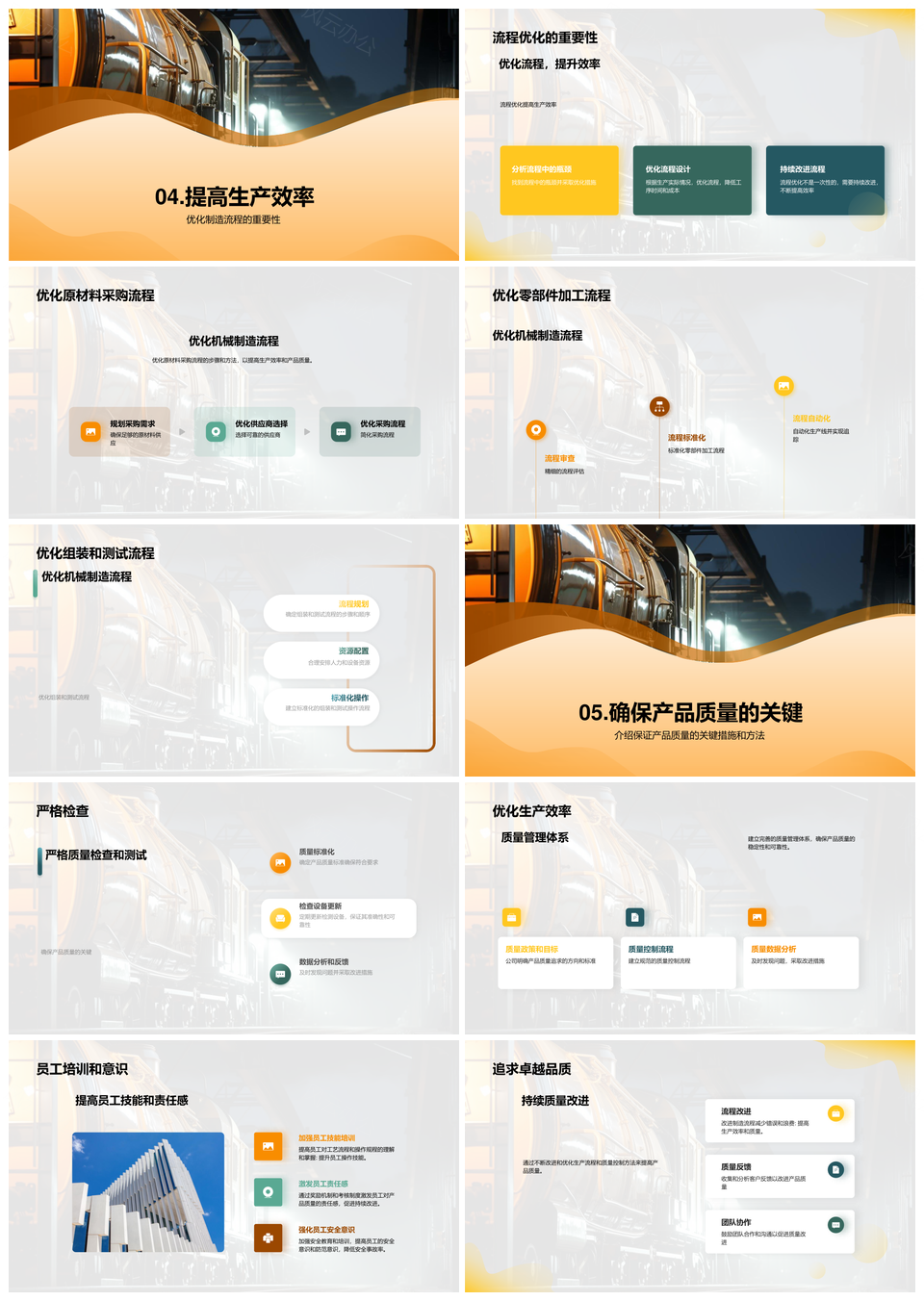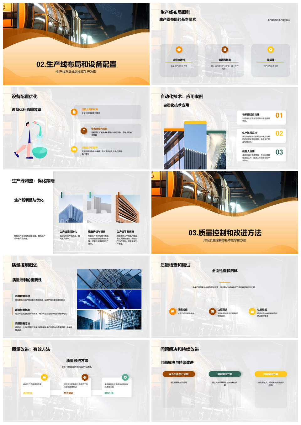 这是一张工业机械生产效率品质制造流程产线自动化技术PPT模板,包含工业机械、生产效率、品质、制造流程、产线、自动化技术等主题内容,也可用作工业机械生产效率品质制造流程、工业机械生产效率品质、工业机械生产效率、生产效率品质制造流程产线、生产效率品质制造、品质制造流程产线自动化技术、品质制造流程产线、制造流程产线自动化技术、制造流程产线自动化、产线自动化技术、工业机械生产效率品质制造、生产效率品质制造流程、品质制造流程产线、产线自动化技术应用、制造流程产线自动、工业机械生产自动化流程等PPT场景使用。 风云办公提供的工业机械生产效率品质制造流程产线自动化技术PPT模板,下载格式为pptx,一共28页,作品中文字及图均可以修改和编辑,图片更改请在作品中右键图片并更换,文字修改请直接点击文字进行修改。