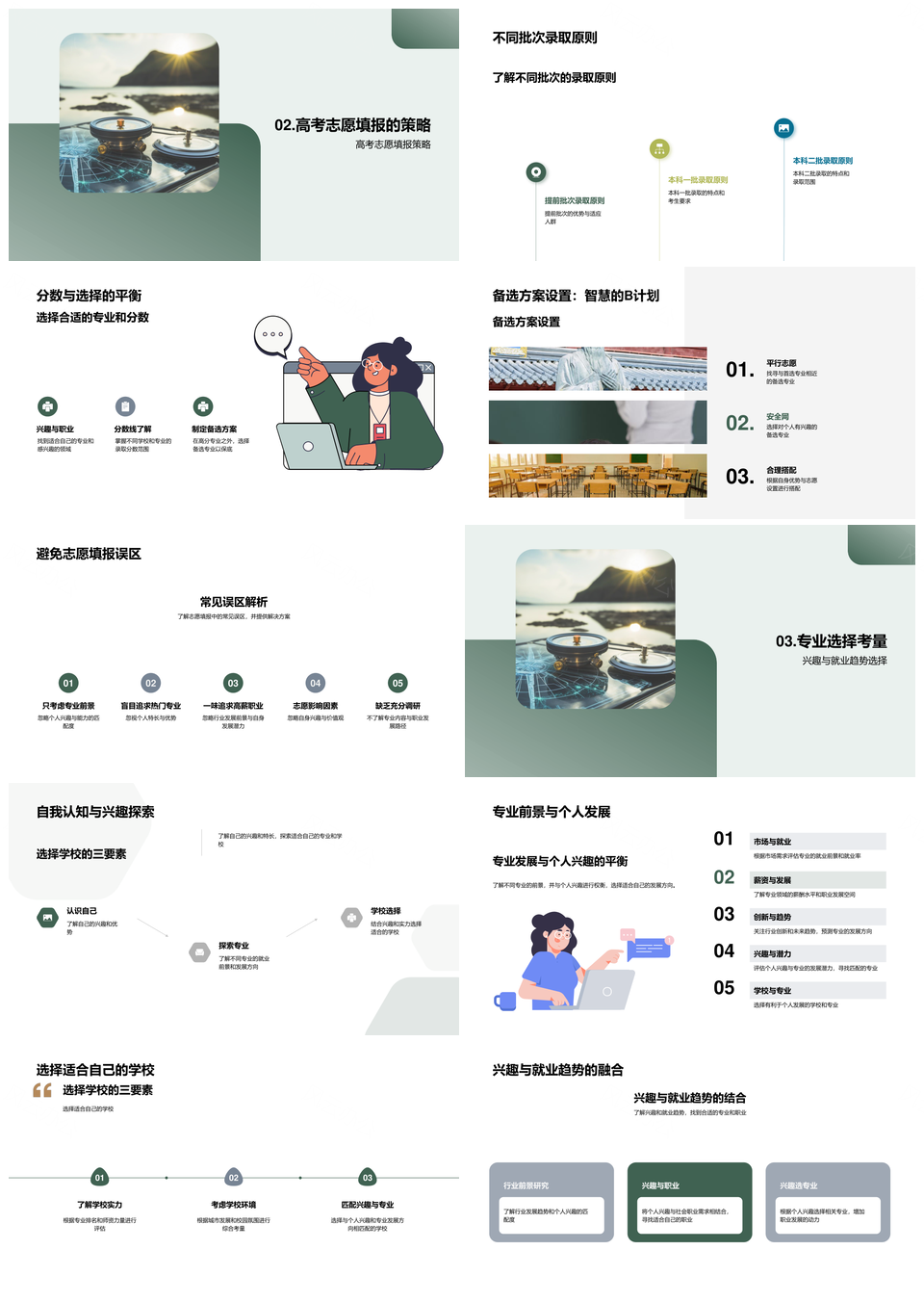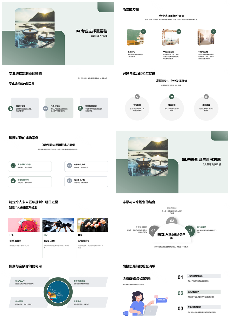 风云办公提供的高考志愿专业选择与五年职业规划指南PPT模板,下载格式为pptx,一共28页,作品中文字及图均可以修改和编辑,图片更改请在作品中右键图片并更换,文字修改请直接点击文字进行修改。