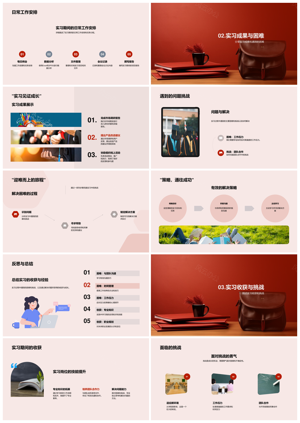 这是一张实习挑战收获校知企能融汇践技PPT模板,包含实习、挑战、收获、校知、企能、融汇、践技等主题内容,也可用作实习挑战收获校知、挑战收获校知企能、收获校知企能融汇、校知企能融汇践技、实习挑战收获、挑战收获校知、收获校知企能、校知企能融汇、企能融汇践技、实习挑战、挑战收获、收获校知、校知企能、企能融汇、融汇践技等PPT场景使用。