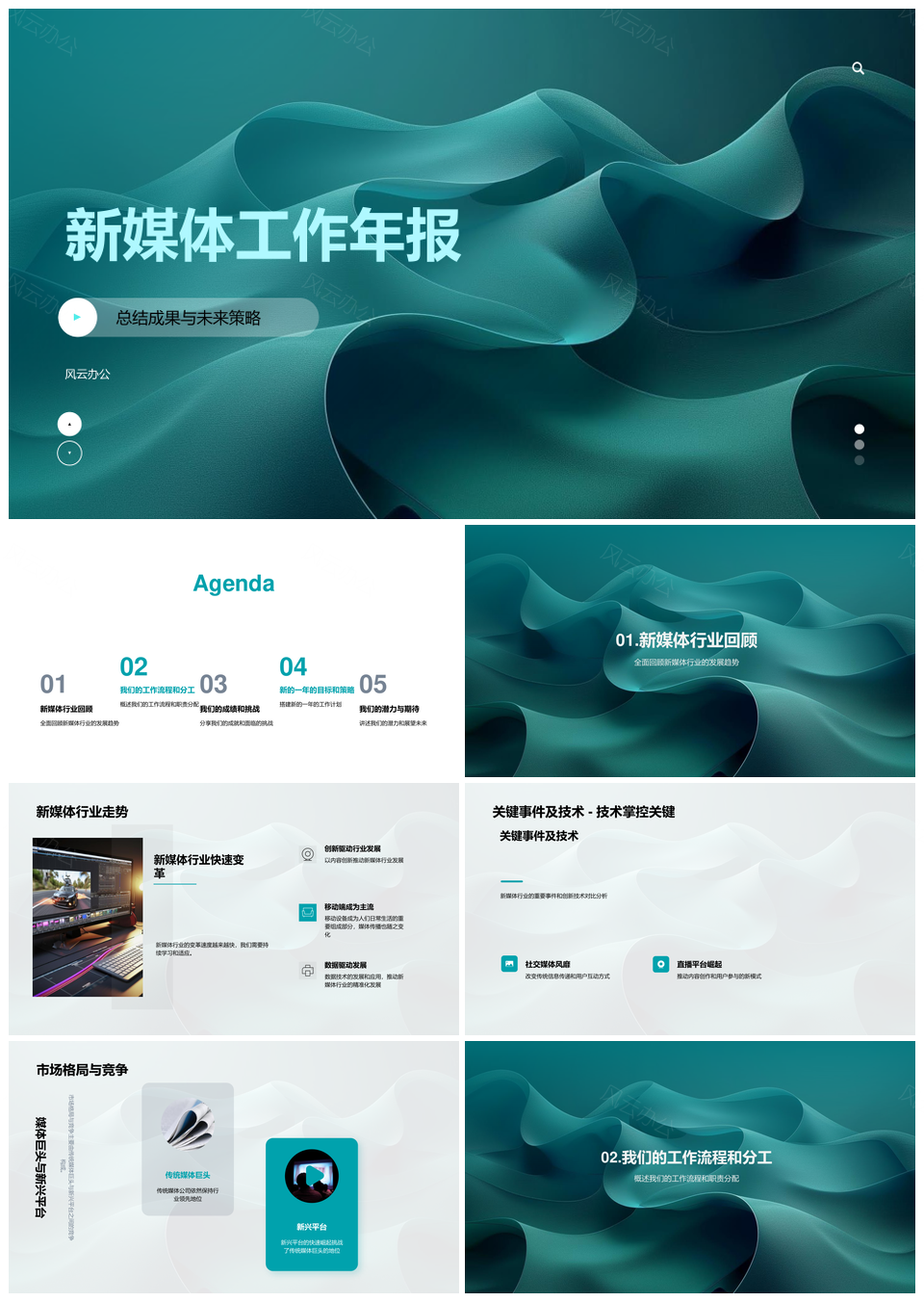 这是一张新媒体行业年报趋势技术革新市场流程团队协作PPT模板,包含新媒体、行业、年报、趋势、技术革新、市场、流程、团队协作等主题内容,也可用作新媒体行业年报趋势、行业年报趋势技术革新、年报趋势技术革新市场、趋势技术革新市场流程、技术革新市场流程团队协作、市场流程团队协作新媒体、流程团队协作新媒体行业、团队协作新媒体行业年报、新媒体行业技术革新市场、年报趋势流程团队协作、技术革新团队协作新媒体、新媒体流程团队协作、行业市场流程团队协作、市场技术革新团队协作、年报团队协作技术革新等PPT场景使用。 风云办公提供的新媒体行业年报趋势技术革新市场流程团队协作PPT模板,下载格式为pptx,一共23页,作品中文字及图均可以修改和编辑,图片更改请在作品中右键图片并更换,文字修改请直接点击文字进行修改。