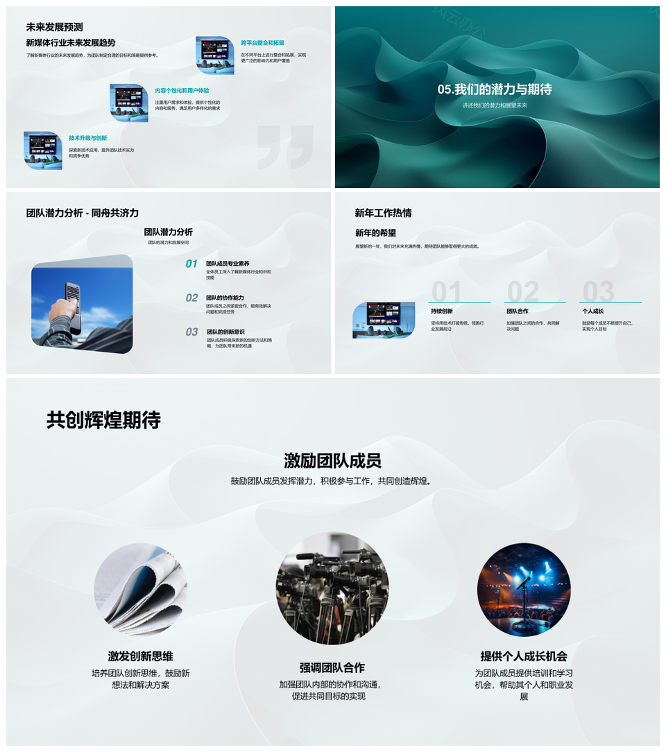 新媒体行业年报趋势技术革新市场流程团队协作PPT模板推荐
