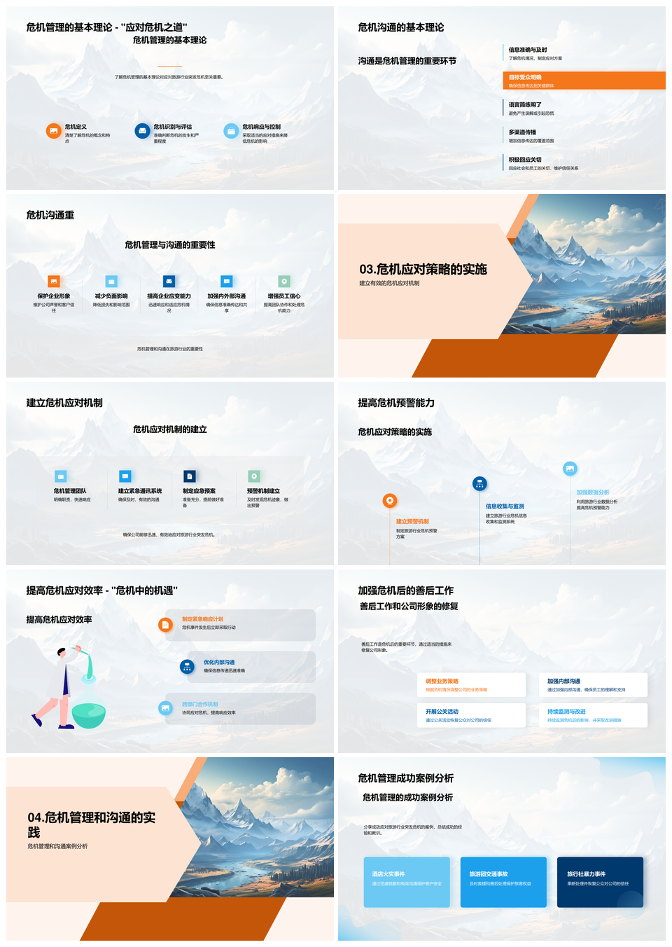 风云办公提供的旅游行业危机类型应对机制与预警效率PPT模板,下载格式为pptx,一共24页,作品中文字及图均可以修改和编辑,图片更改请在作品中右键图片并更换,文字修改请直接点击文字进行修改。