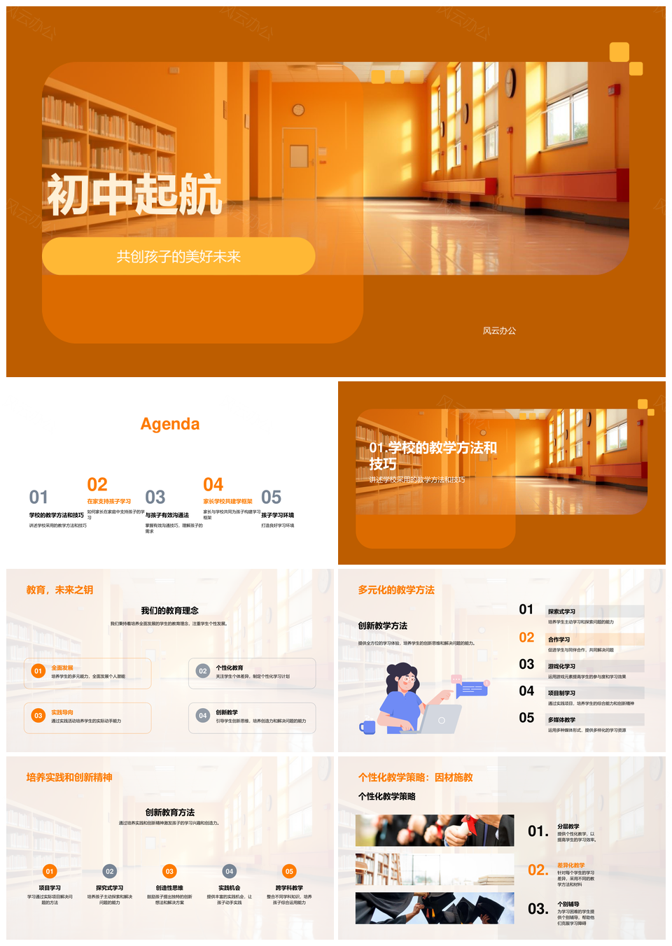 风云办公提供的家校共建初中起航多元教学与学习环境PPT模板,下载格式为pptx,一共33页,作品中文字及图均可以修改和编辑,图片更改请在作品中右键图片并更换,文字修改请直接点击文字进行修改。