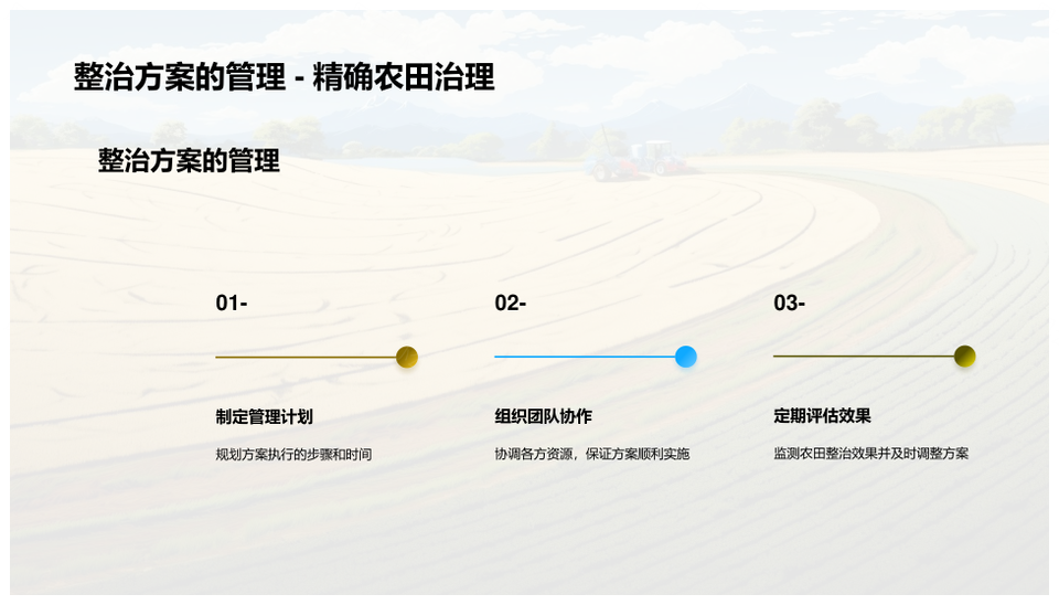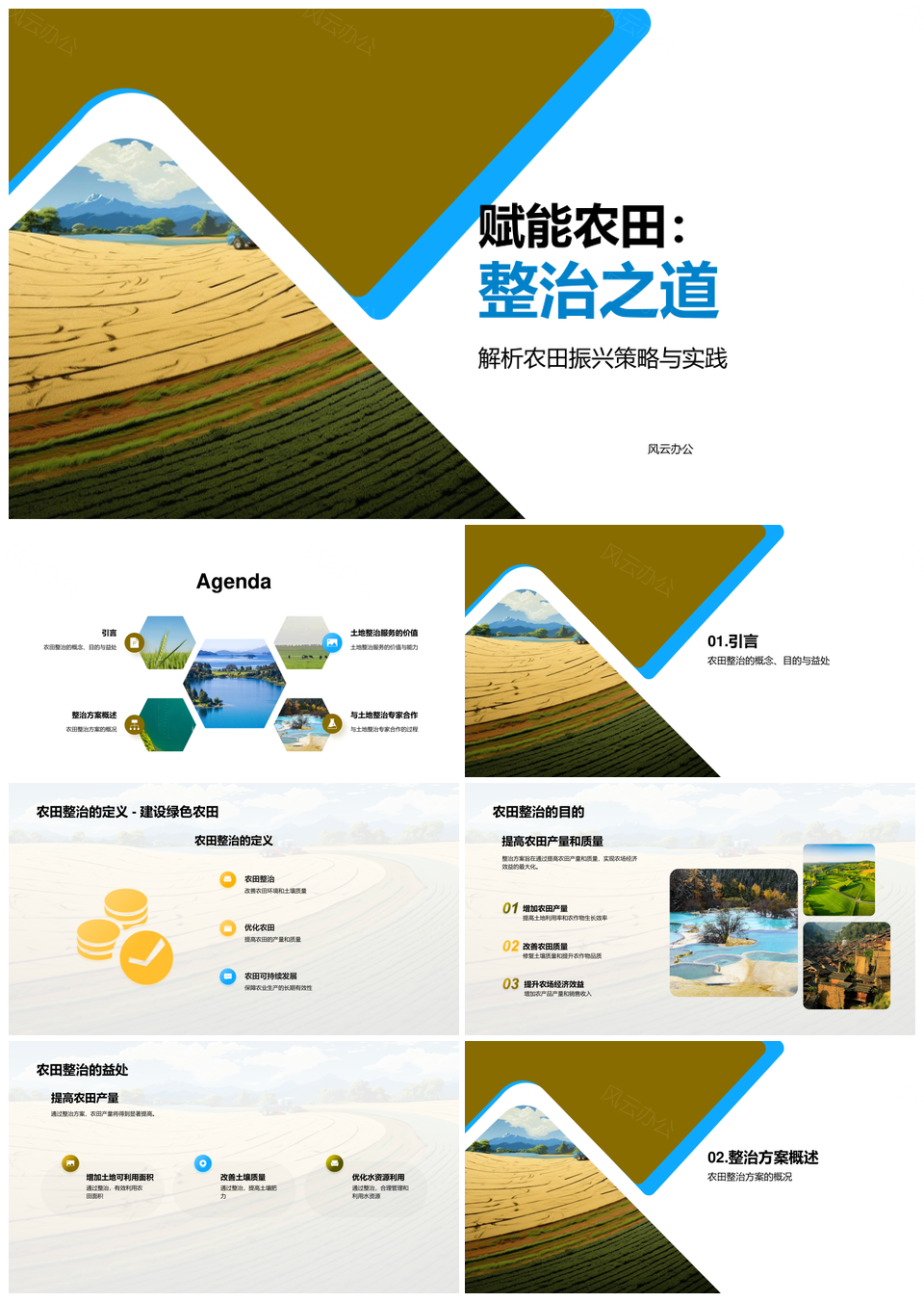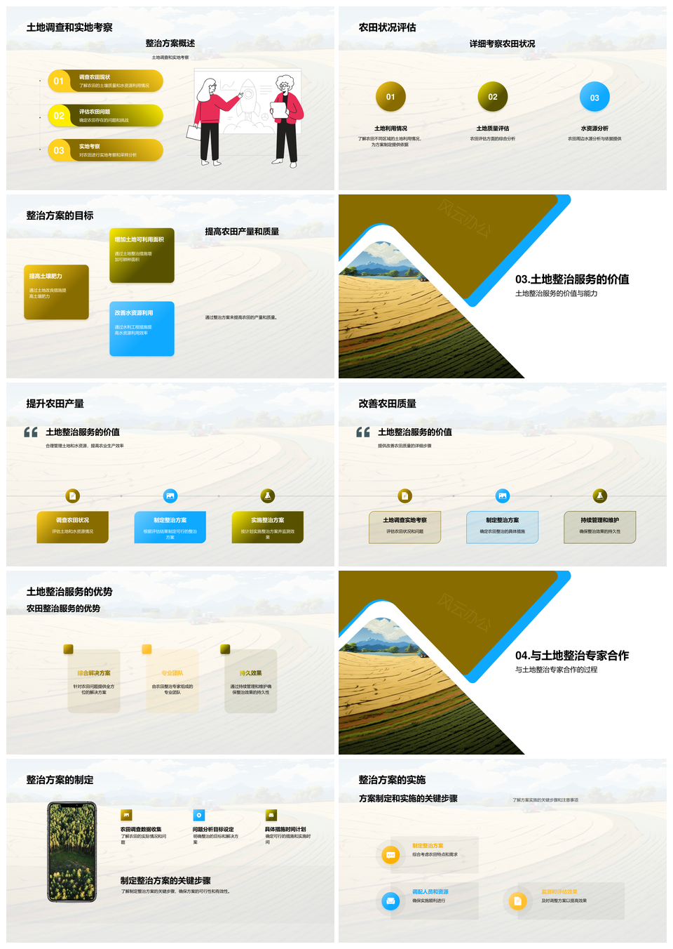 风云办公提供的农田整治专家助力农场主破解难题挑战PPT模板,下载格式为pptx,一共19页,作品中文字及图均可以修改和编辑,图片更改请在作品中右键图片并更换,文字修改请直接点击文字进行修改。