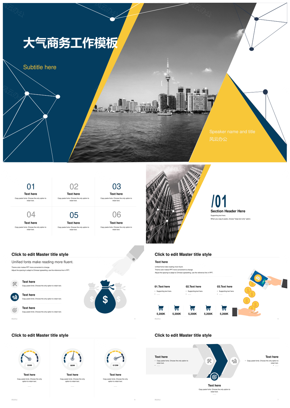 风云办公提供的蓝黄点线面商务城市计划汇报PPT模板,下载格式为pptx,一共31页,作品中文字及图均可以修改和编辑,图片更改请在作品中右键图片并更换,文字修改请直接点击文字进行修改。