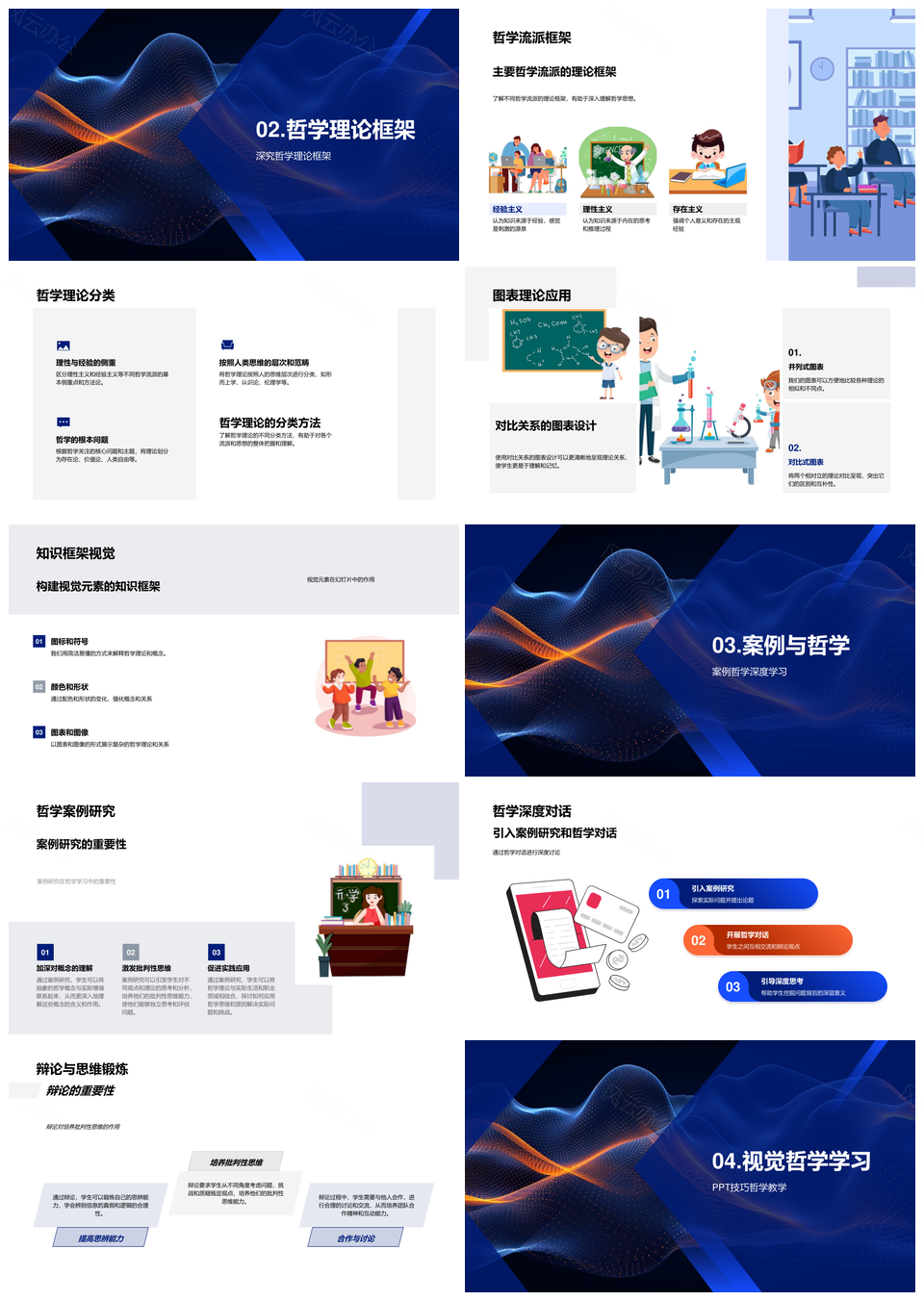 哲学教学理论史思维导图视觉案例对话批判PPT模板推荐