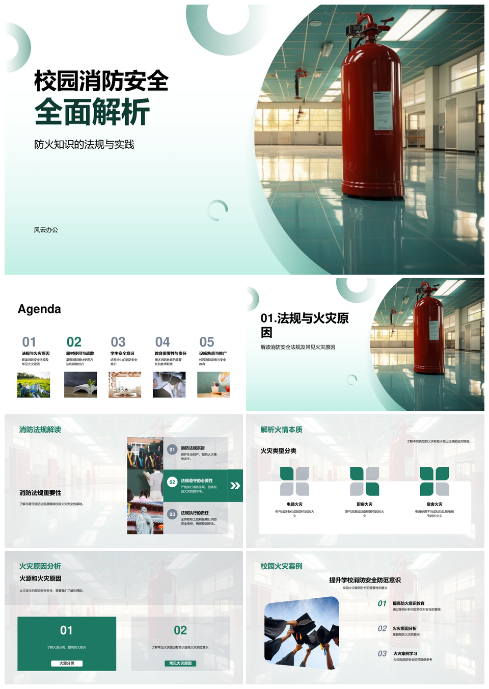这是一张校园消防安全法规知识演习器材案例解析PPT模板,包含校园、消防安全、法规、知识、演习、器材、案例、解析等主题内容,也可用作校园消防安全法规、消防安全法规知识、法规知识演习器材、演习器材案例解析、安全法规案例解析、校园消防演习案例、校园安全演习器材、消防安全知识案例、法规演习器材案例、安全知识案例解析、消防演习器材案例、校园安全法规、知识演习案例、安全法规解析、演习器材解析等PPT场景使用。 风云办公提供的校园消防安全法规知识演习器材案例解析PPT模板,下载格式为pptx,一共33页,作品中文字及图均可以修改和编辑,图片更改请在作品中右键图片并更换,文字修改请直接点击文字进行修改。