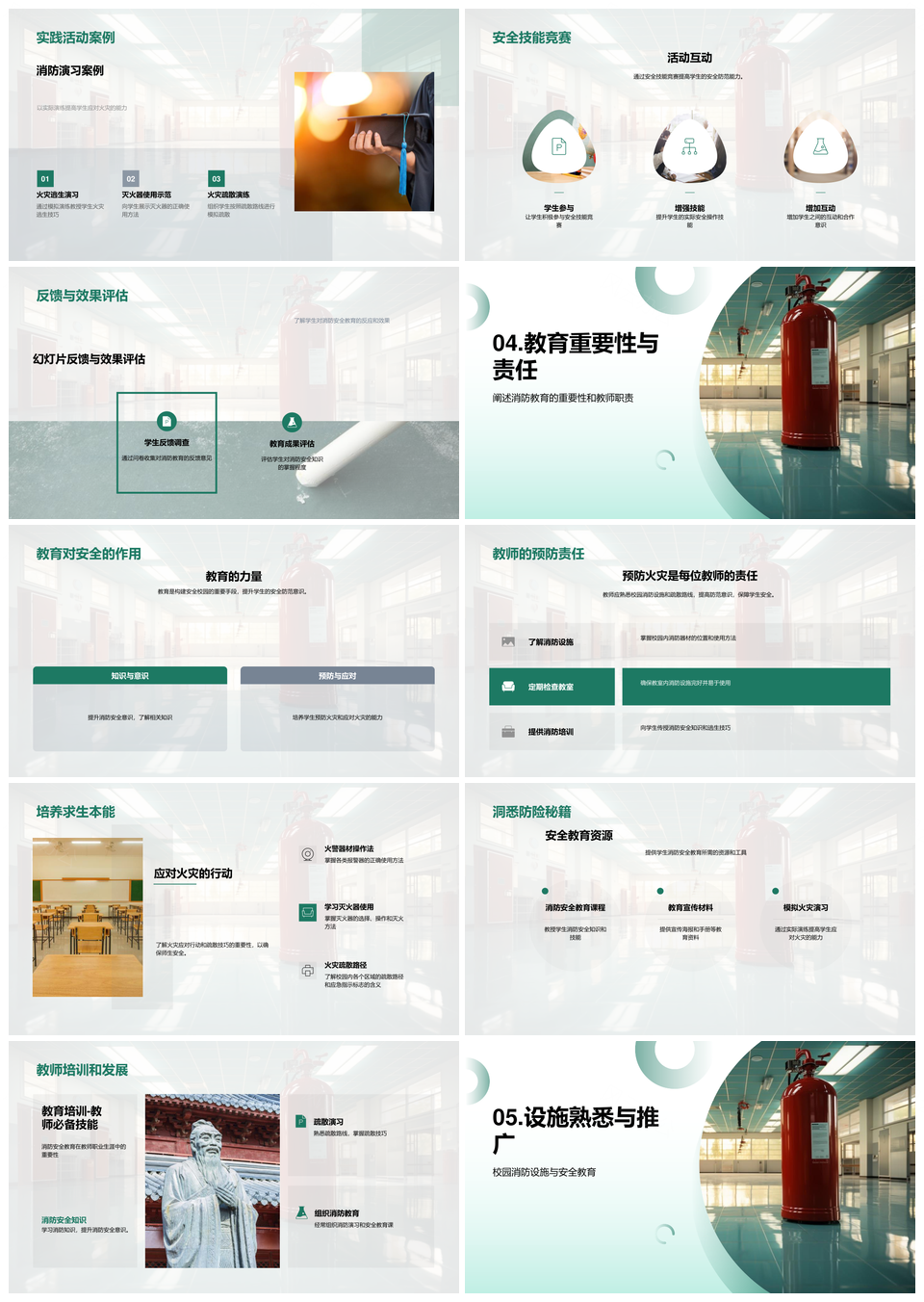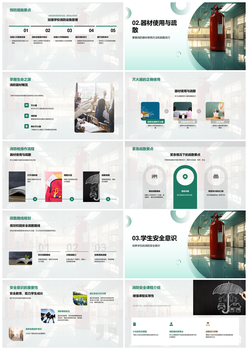 校园消防安全法规知识演习器材案例解析PPT模板推荐