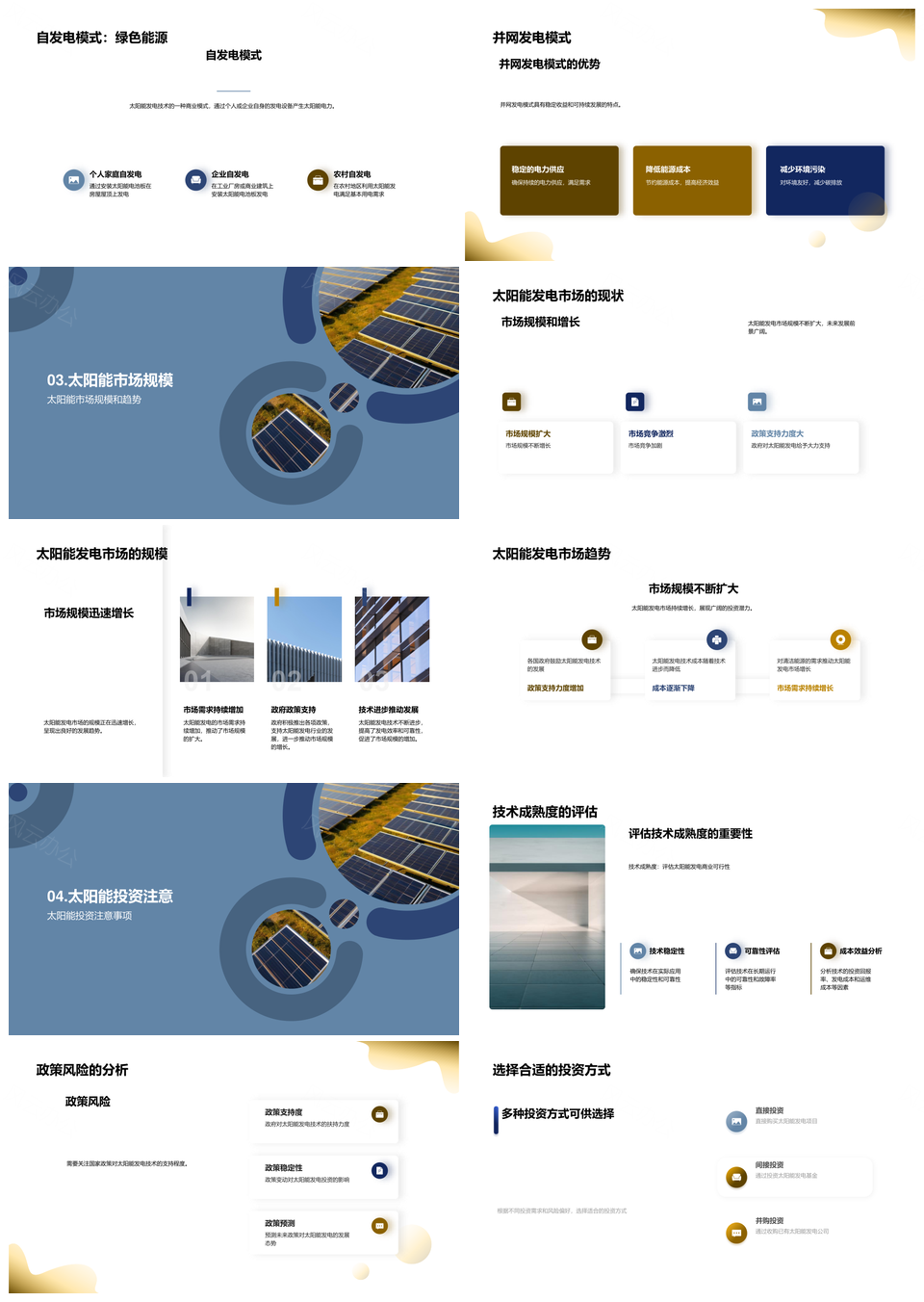 这是一张太阳能发电投资商机趋势解析PPT模板,包含太阳能发电、投资、商机、趋势、解析等主题内容,也可用作太阳能发电投资商机趋势、太阳能发电投资商机、太阳能发电投资趋势、发电投资商机趋势解析、太阳能发电商机趋势、太阳能投资商机趋势、发电投资商机趋势、投资商机趋势解析、太阳能发电投资、太阳能发电商机、发电投资商机、投资商机趋势、商机趋势解析、太阳能投资、发电商机、趋势解析等PPT场景使用。