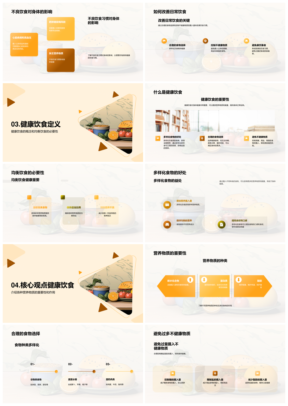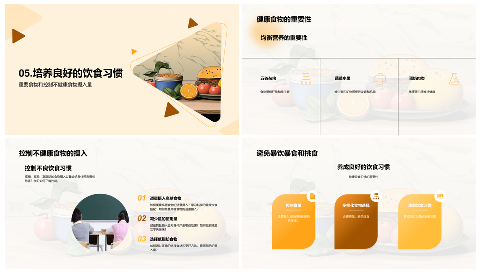 小学生校园营养健康教育引导健康饮食习惯PPT模板推荐