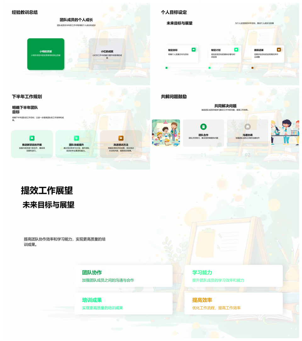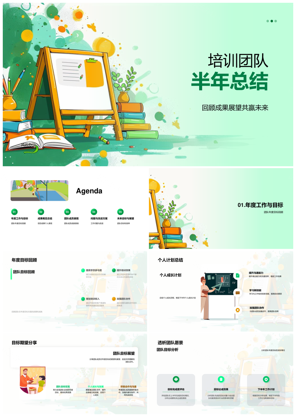 培训团队半年总结年度目标成果成员成长未来规划PPT模板推荐