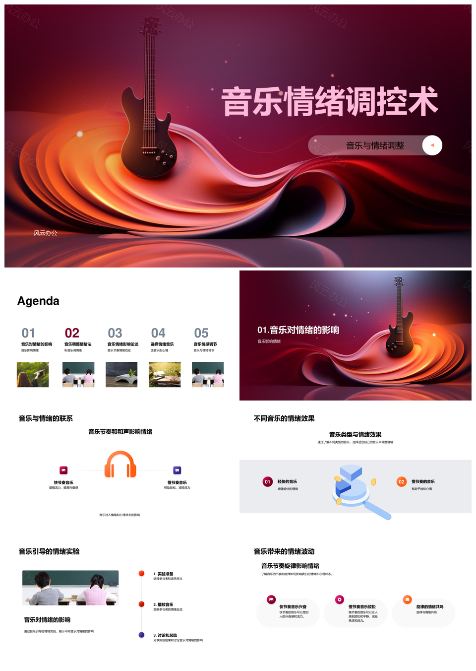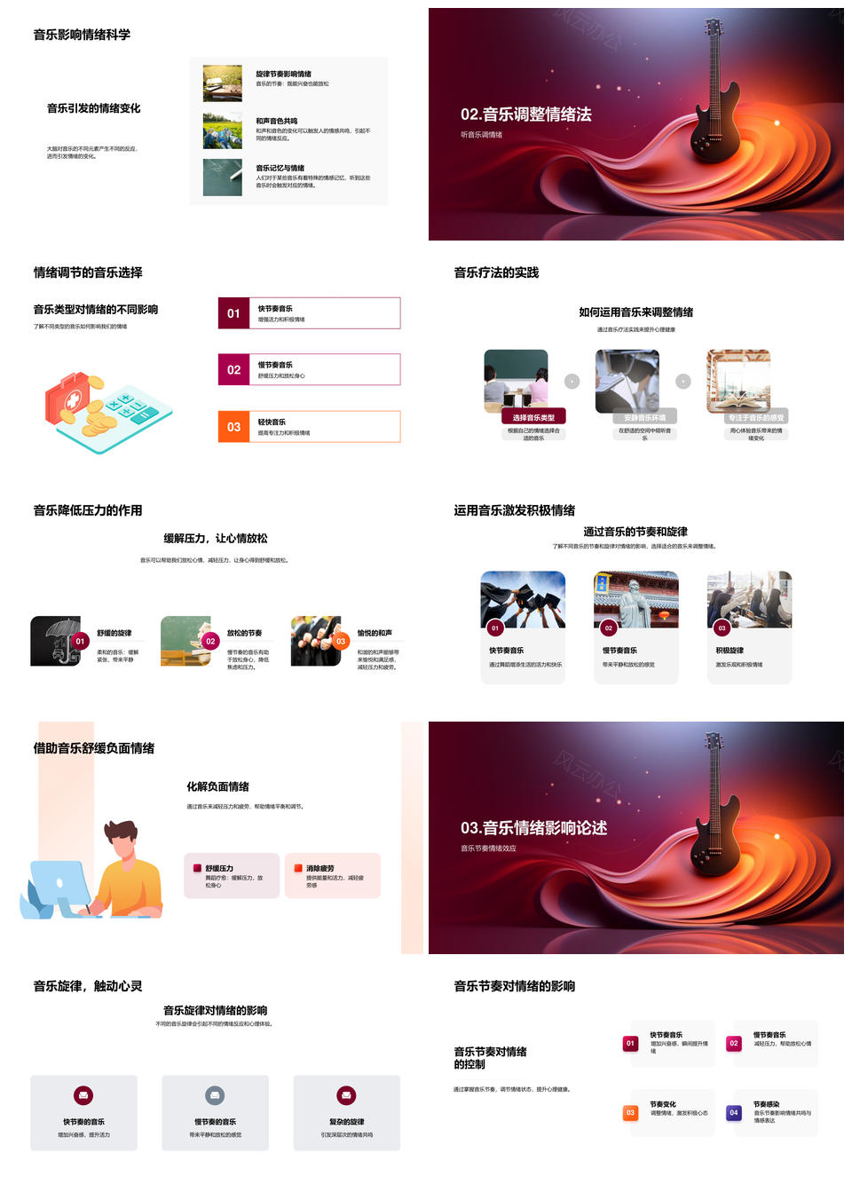 风云办公提供的音乐节奏符号调节情绪影响PPT模板,下载格式为pptx,一共33页,作品中文字及图均可以修改和编辑,图片更改请在作品中右键图片并更换,文字修改请直接点击文字进行修改。