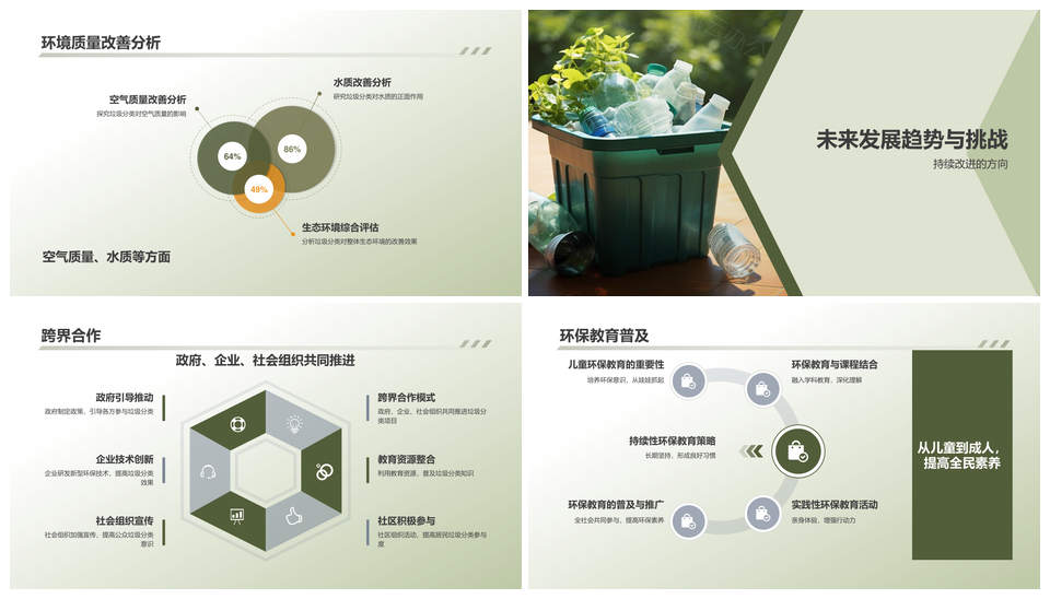 环保教育污染防治垃圾分类节水减塑可持续发展PPT模板