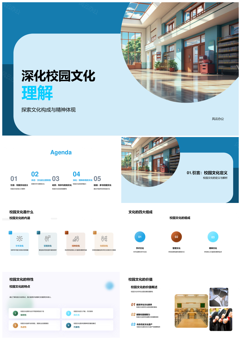 风云办公提供的校园文化构成精神体现与建设探析PPT模板,下载格式为pptx,一共28页,作品中文字及图均可以修改和编辑,图片更改请在作品中右键图片并更换,文字修改请直接点击文字进行修改。