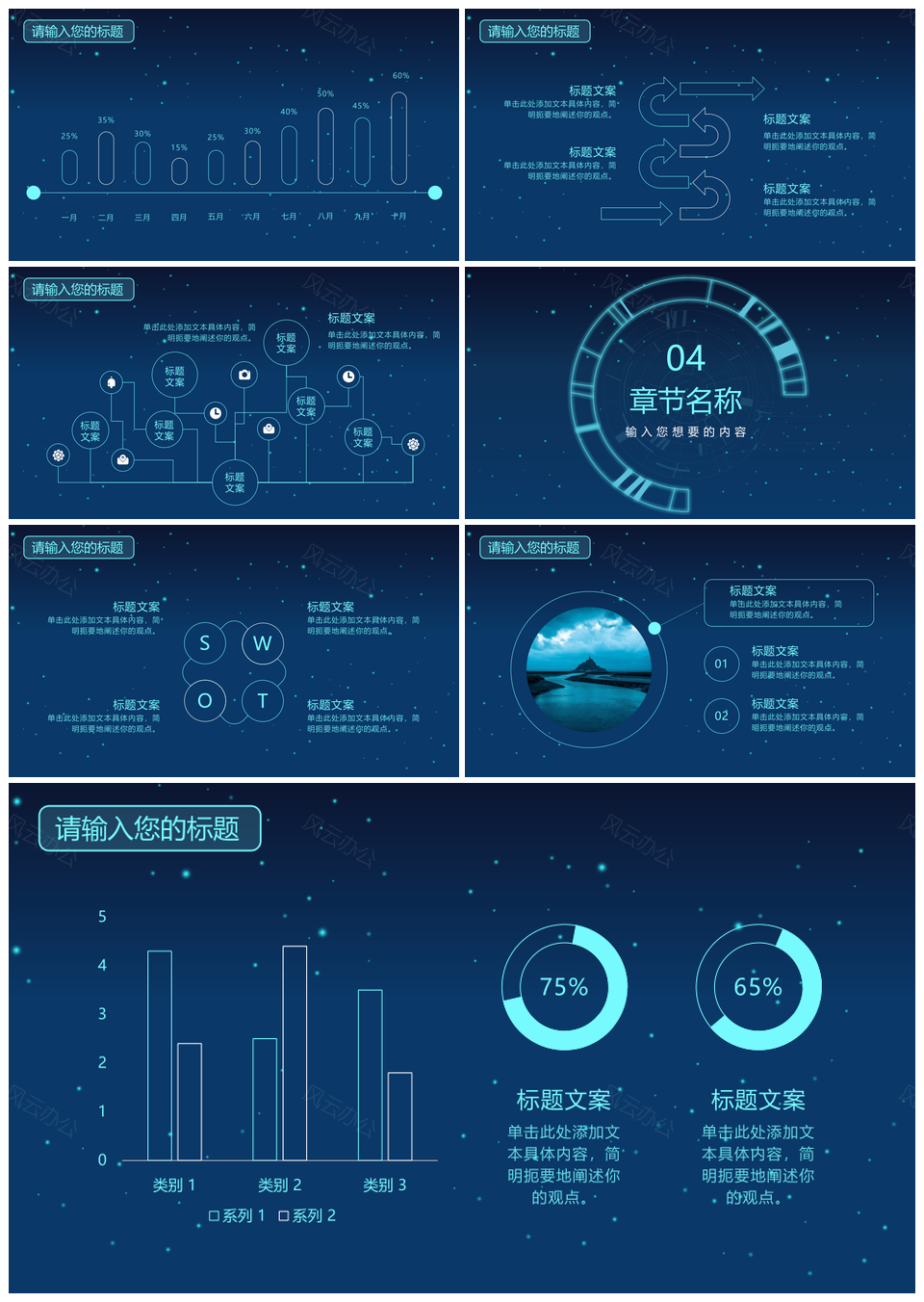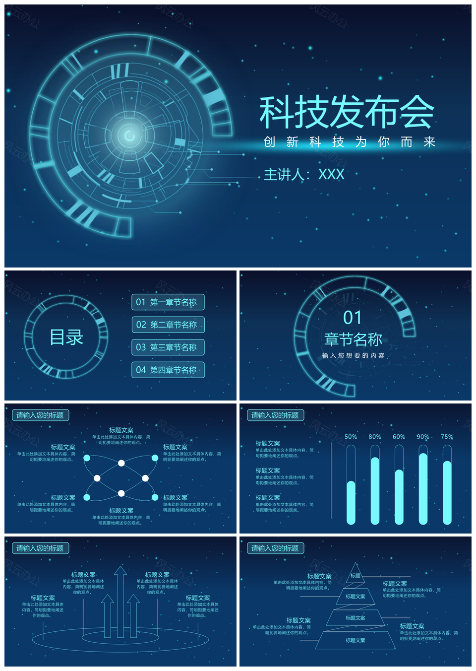 风云办公提供的蓝色高端科技风发布会演讲PPT模板,下载格式为pptx,一共25页,作品中文字及图均可以修改和编辑,图片更改请在作品中右键图片并更换,文字修改请直接点击文字进行修改。