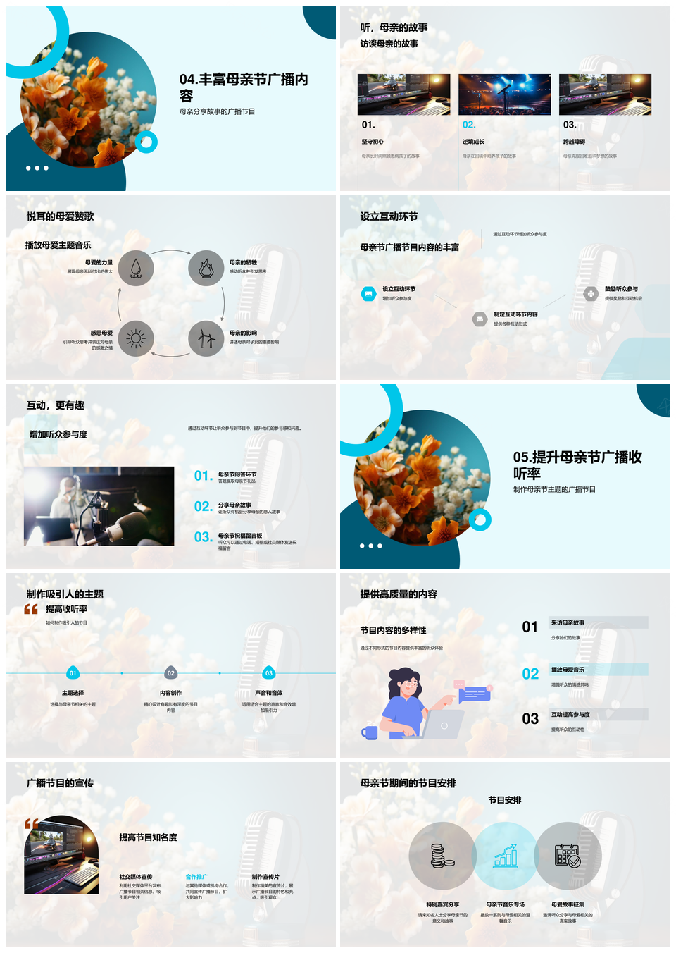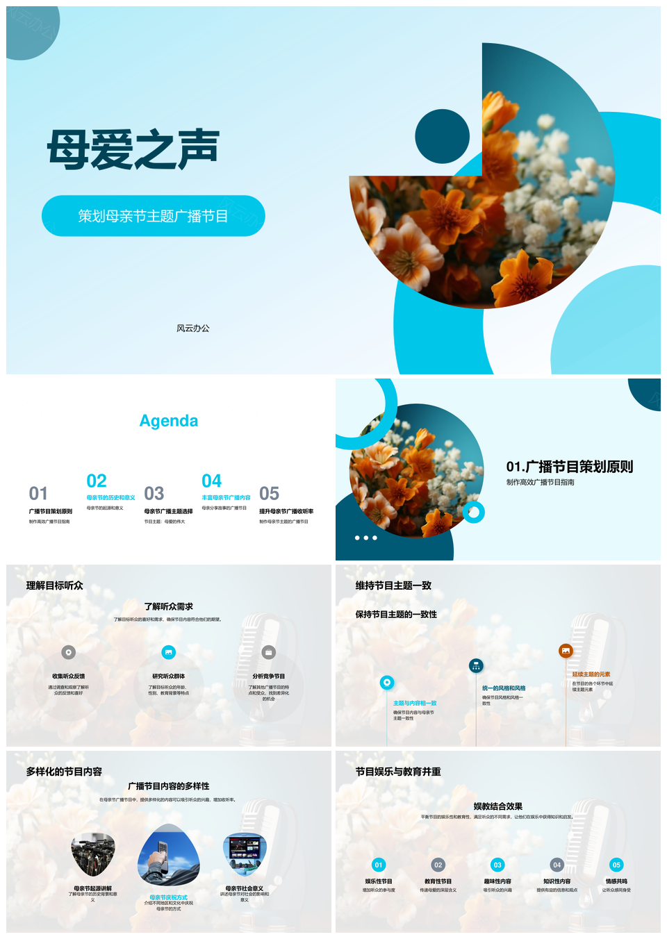 风云办公提供的母爱之声广播母亲节起源多元娱教PPT模板,下载格式为pptx,一共28页,作品中文字及图均可以修改和编辑,图片更改请在作品中右键图片并更换,文字修改请直接点击文字进行修改。