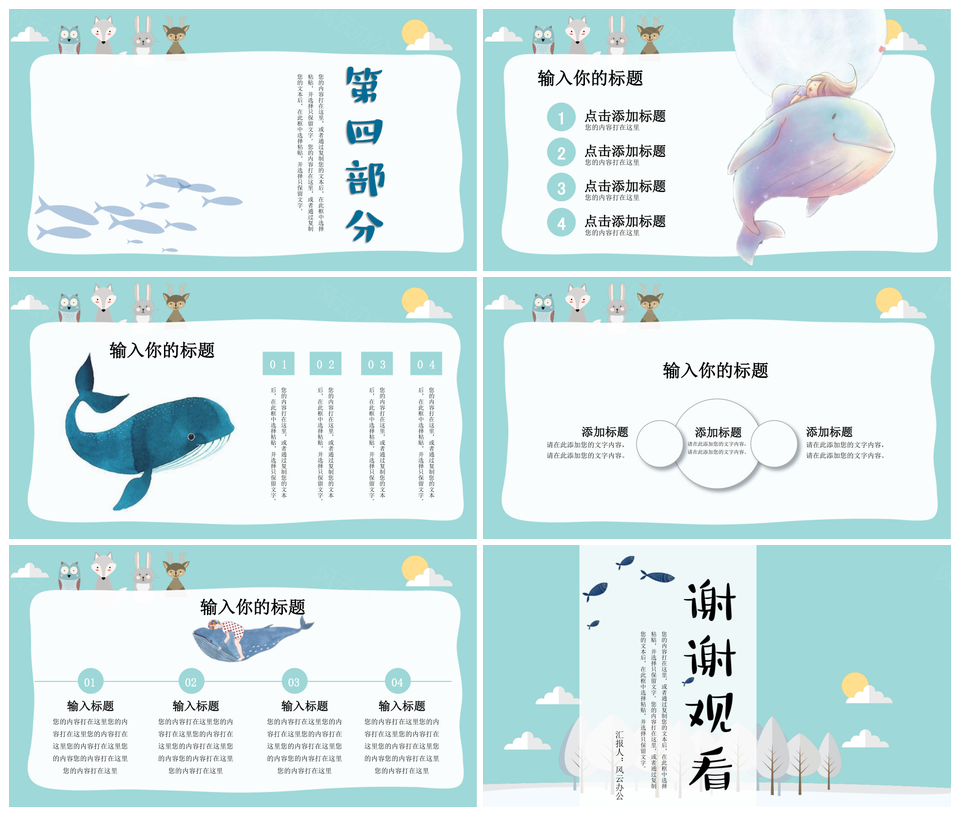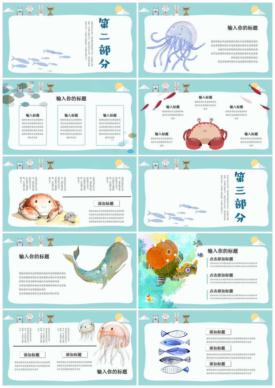 蓝色可爱卡通班会家长会动漫卡通欢乐海世界PPT模板