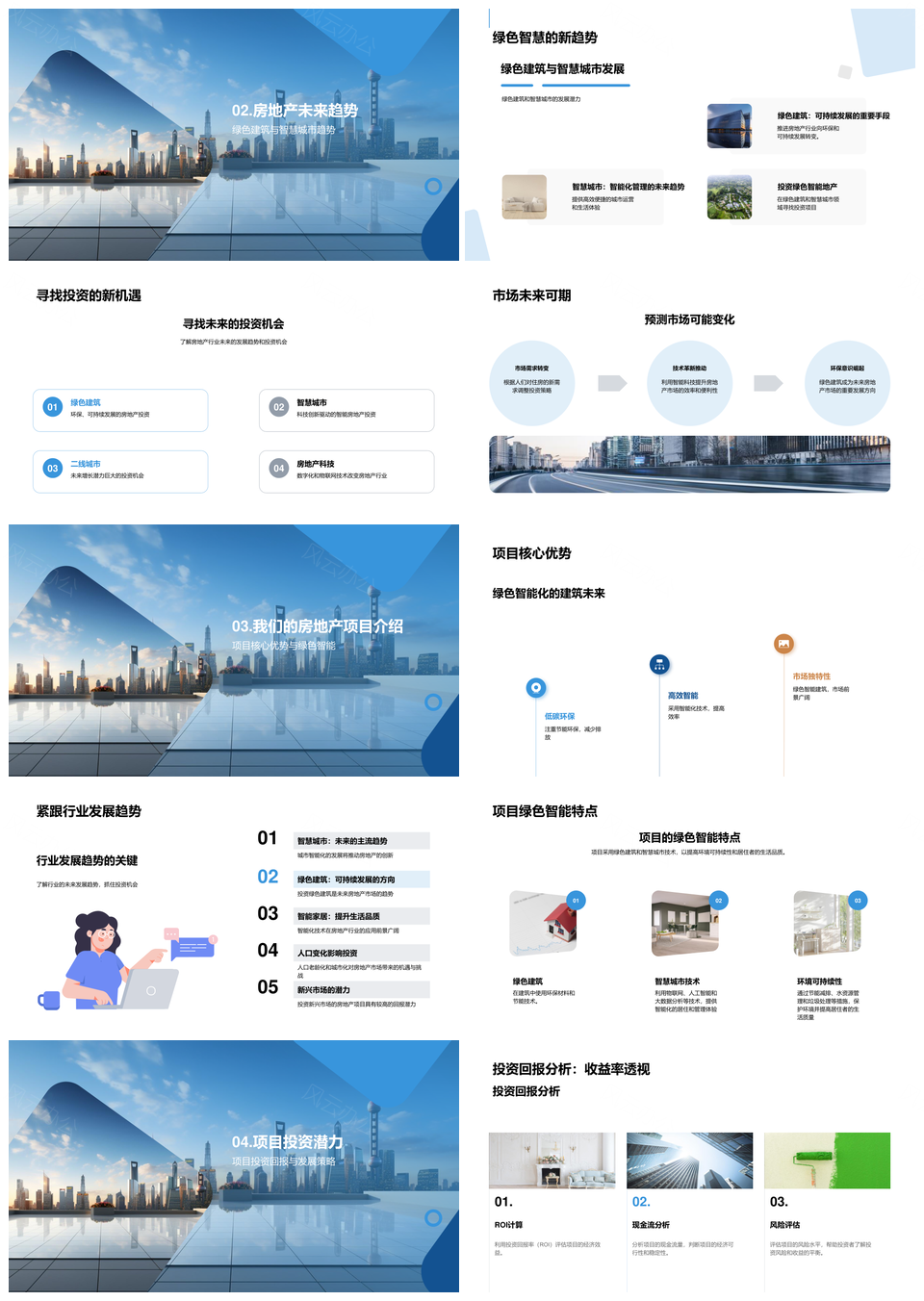 风云办公提供的房地产绿色智慧城市投资趋势与机遇PPT模板,下载格式为pptx,一共24页,作品中文字及图均可以修改和编辑,图片更改请在作品中右键图片并更换,文字修改请直接点击文字进行修改。