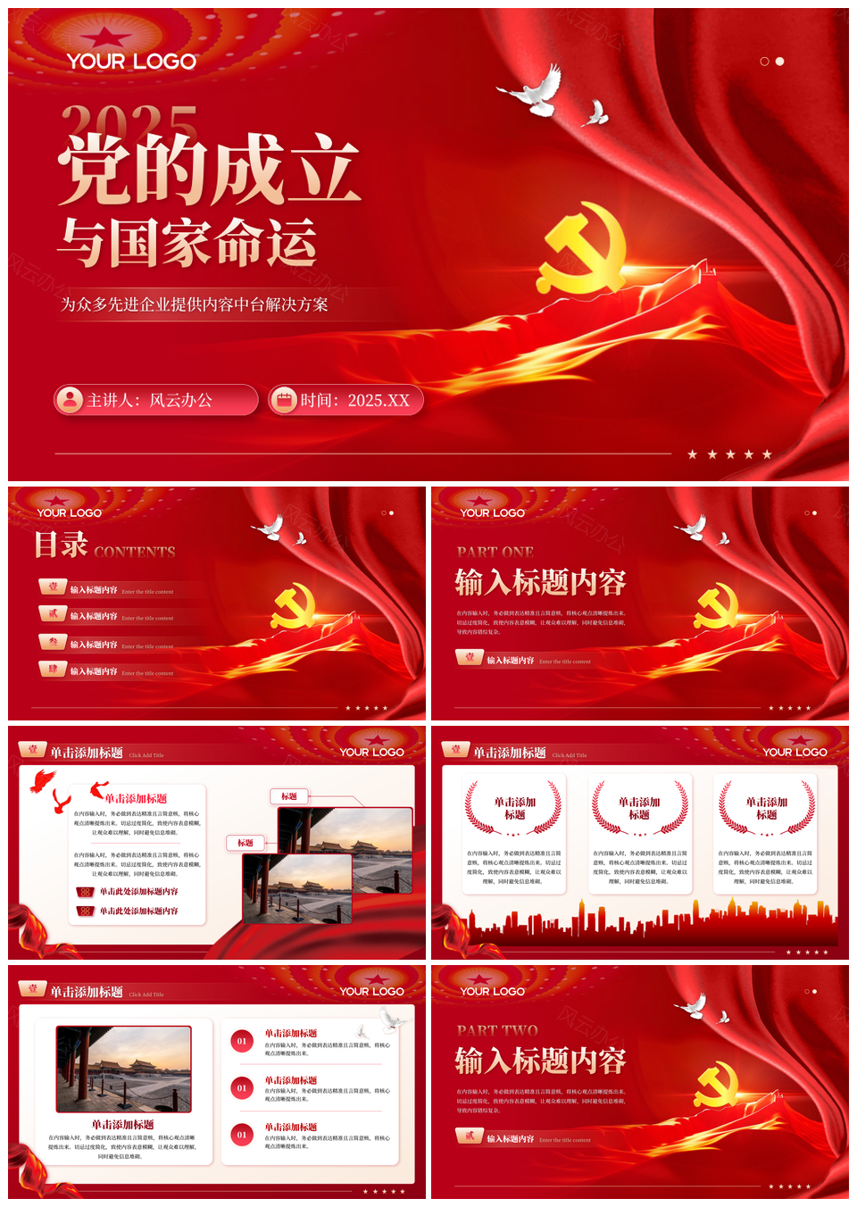 风云办公提供的2025红色党建党政建设兴国历程PPT模板,下载格式为pptx,一共20页,作品中文字及图均可以修改和编辑,图片更改请在作品中右键图片并更换,文字修改请直接点击文字进行修改。