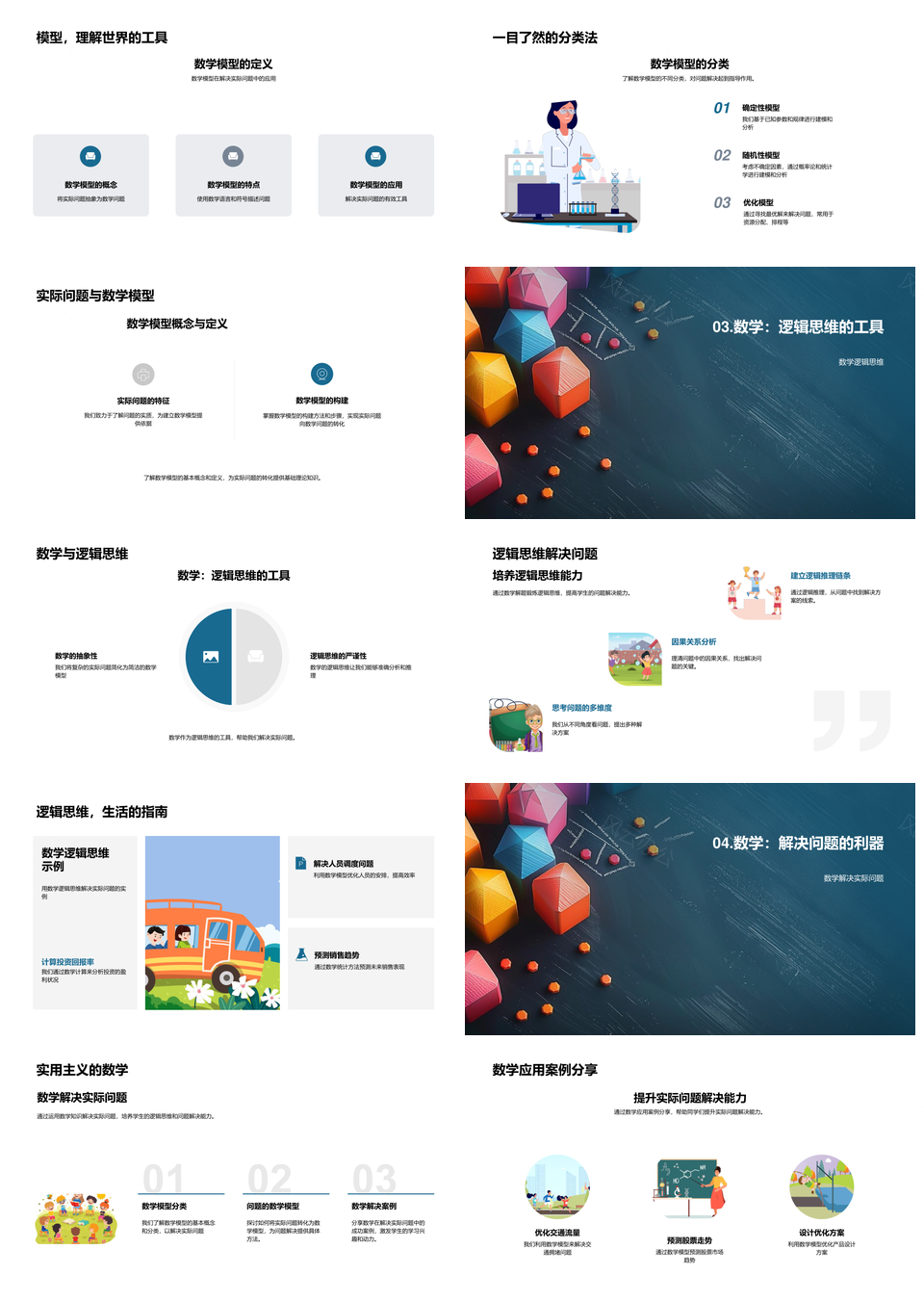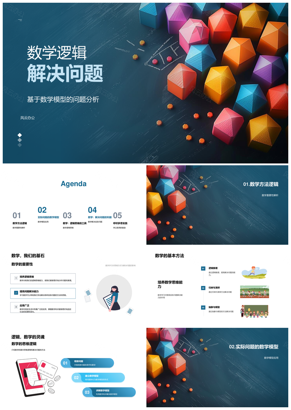 风云办公提供的数学逻辑解题模型方法实践应用案例PPT模板,下载格式为pptx,一共23页,作品中文字及图均可以修改和编辑,图片更改请在作品中右键图片并更换,文字修改请直接点击文字进行修改。