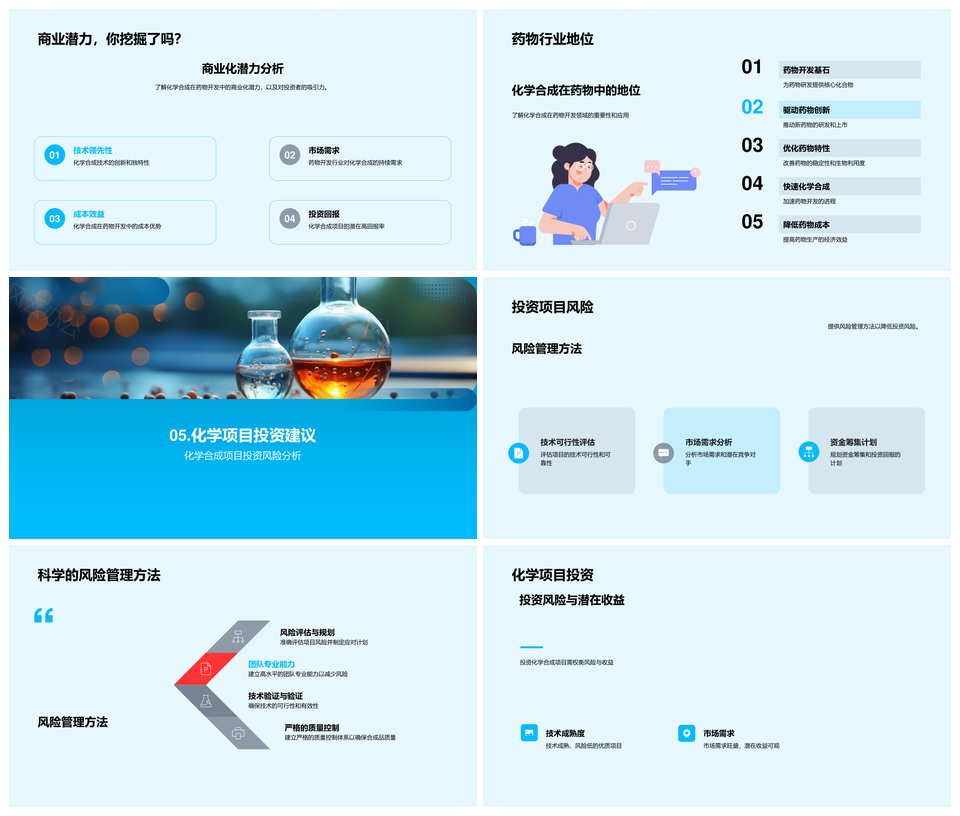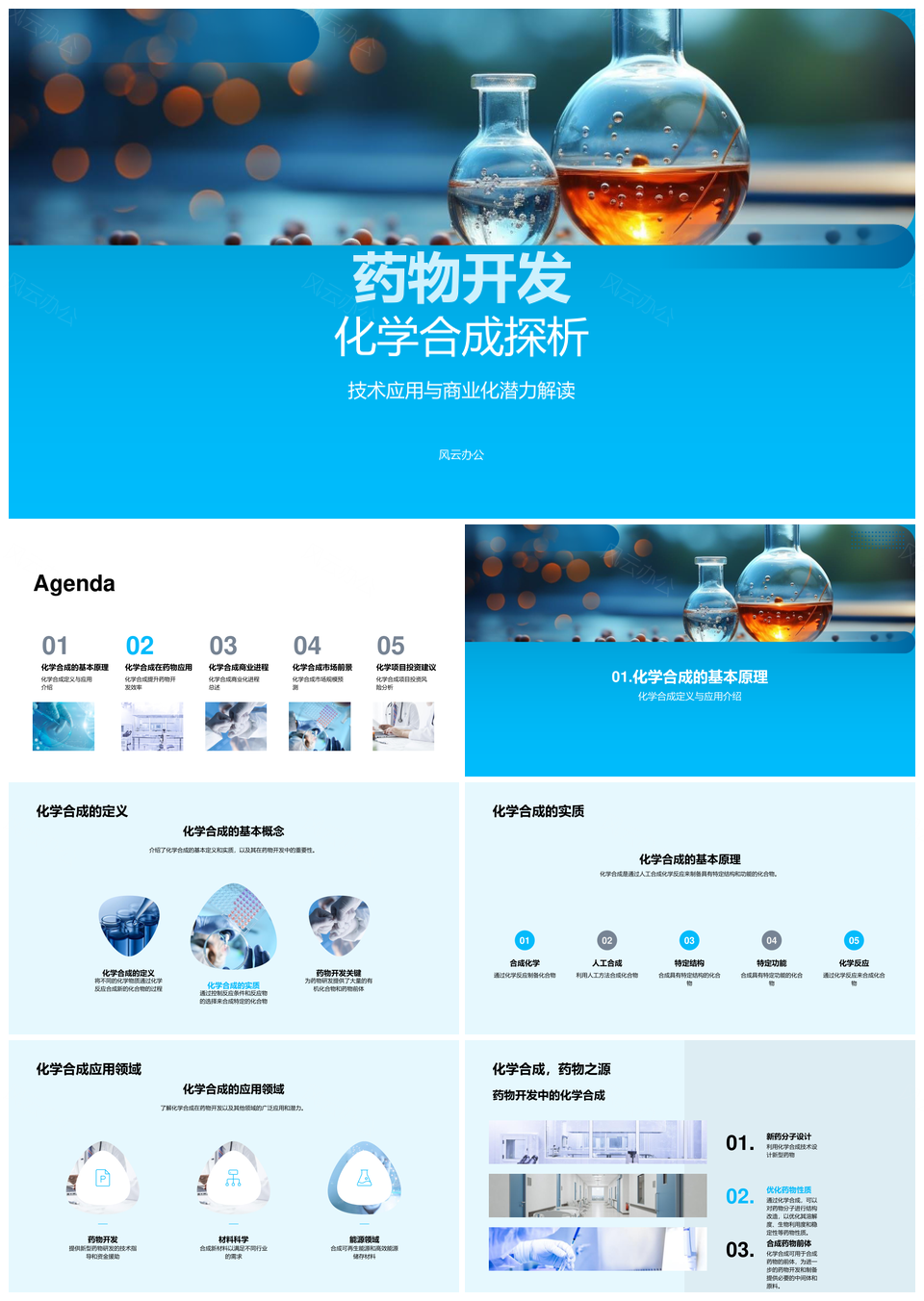 风云办公提供的药物开发化学合成技术革新商业化PPT模板,下载格式为pptx,一共24页,作品中文字及图均可以修改和编辑,图片更改请在作品中右键图片并更换,文字修改请直接点击文字进行修改。