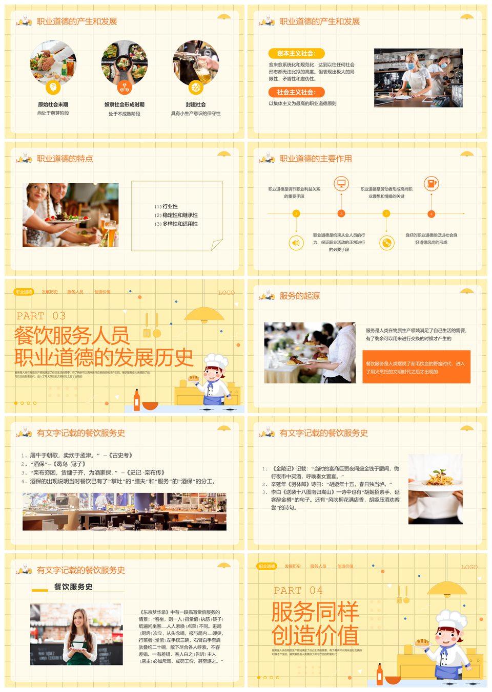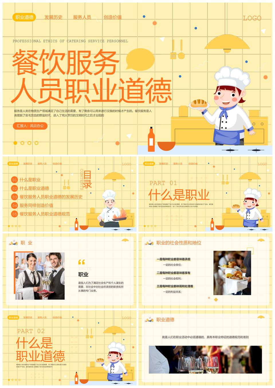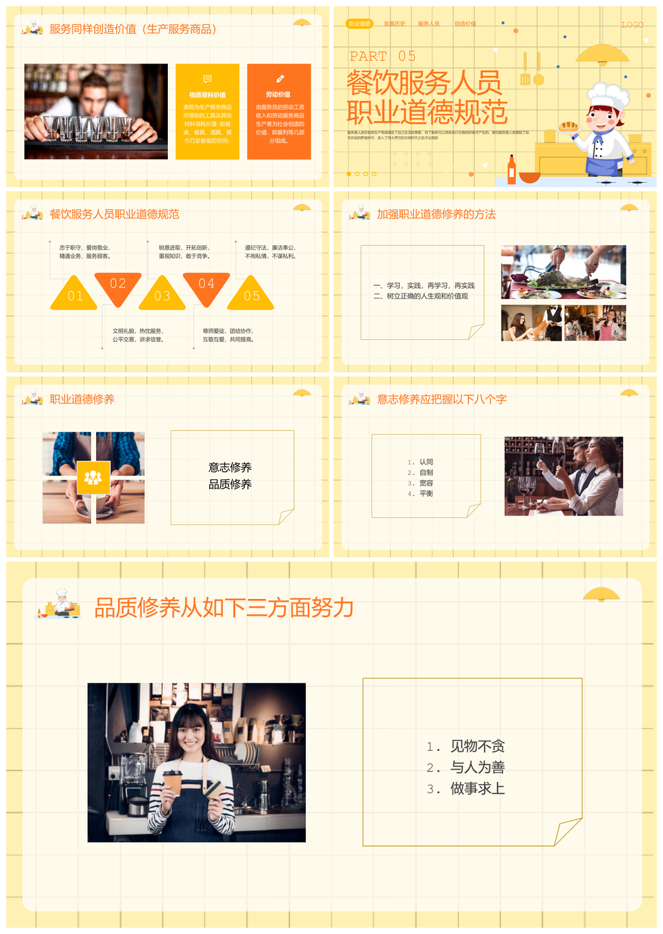 橙黄简约餐饮职业道德动态宣传PPT模板