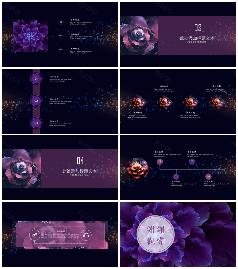专业彩色水晶分形花答辩PPT模板