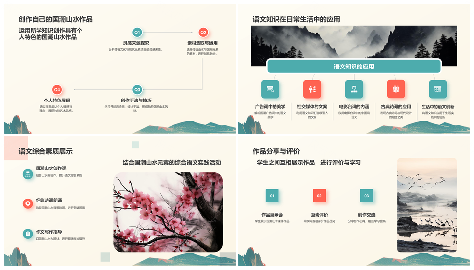 这是一张国潮山水语文教学创意文化传承课件,包含国潮、山水、语文教学、创意、文化、传承、课件等主题内容,也可用作国潮山水语文教学、语文教学创意文化、教学创意文化传承、创意文化传承课件、国潮山水语文、山水语文教学、语文教学创意、教学创意文化、创意文化传承、文化传承课件、国潮山水、山水语文、语文教学、教学创意、文化传承等PPT场景使用。
