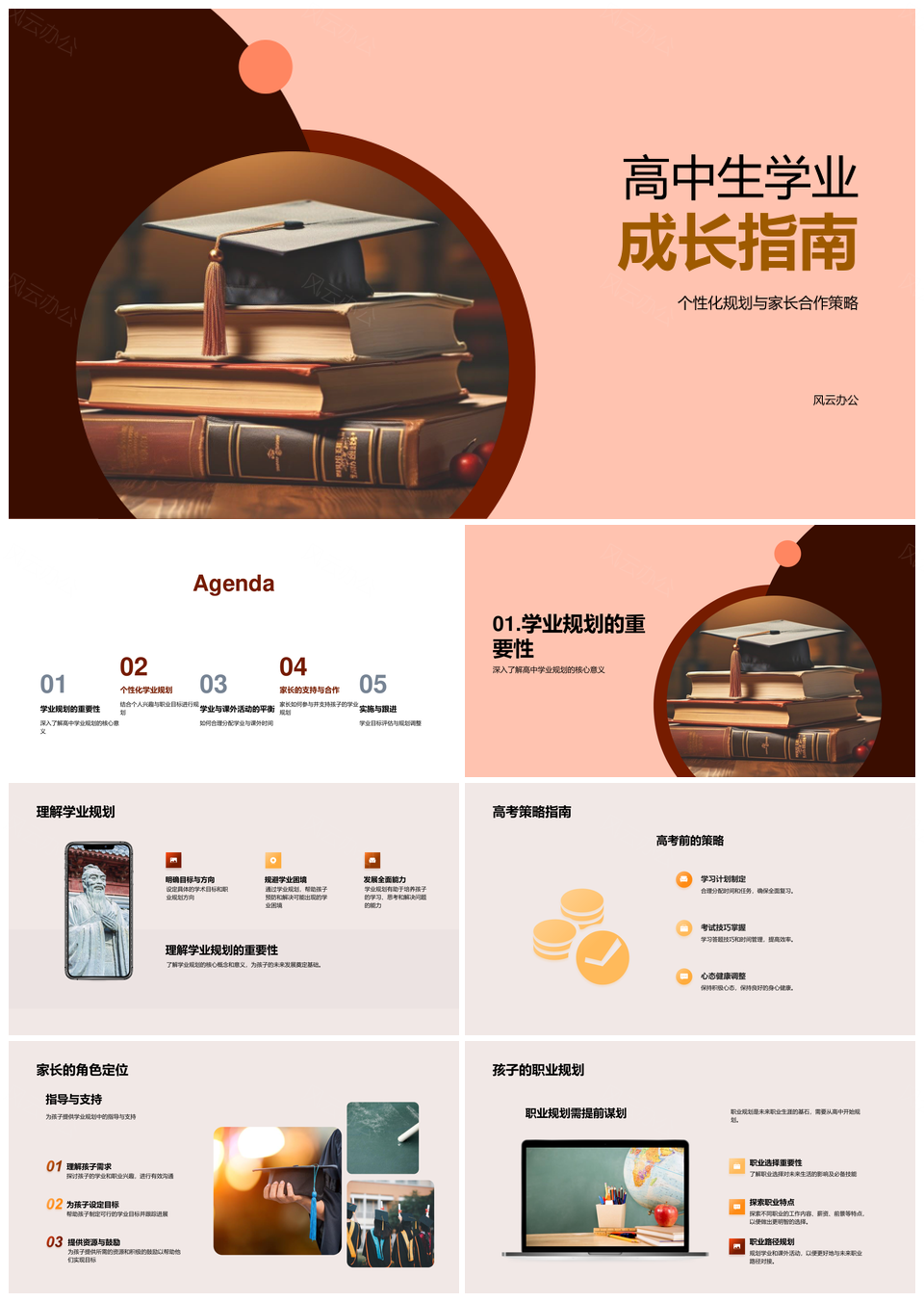 风云办公提供的高中生个性化学业家校协同生涯规划PPT模板,下载格式为pptx,一共33页,作品中文字及图均可以修改和编辑,图片更改请在作品中右键图片并更换,文字修改请直接点击文字进行修改。