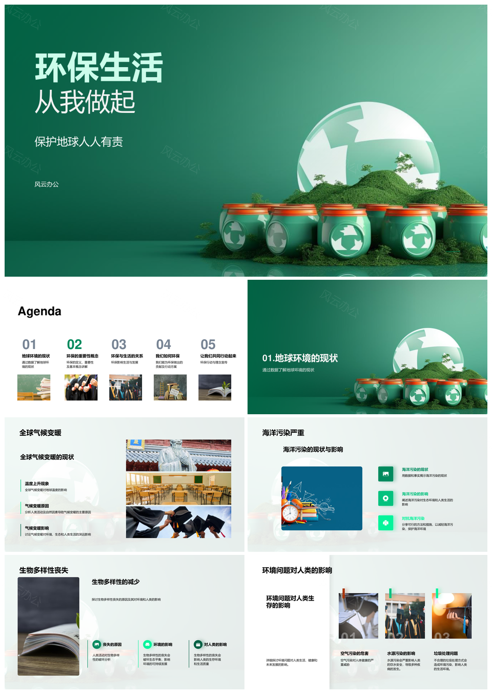 风云办公提供的环保生活守护地球生态与可持续发展PPT模板,下载格式为pptx,一共33页,作品中文字及图均可以修改和编辑,图片更改请在作品中右键图片并更换,文字修改请直接点击文字进行修改。