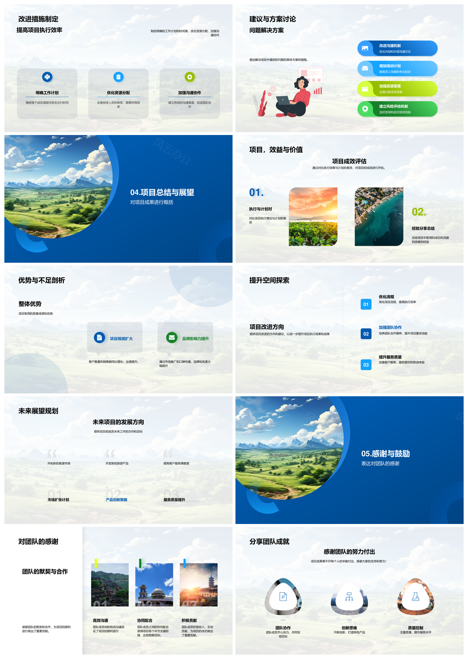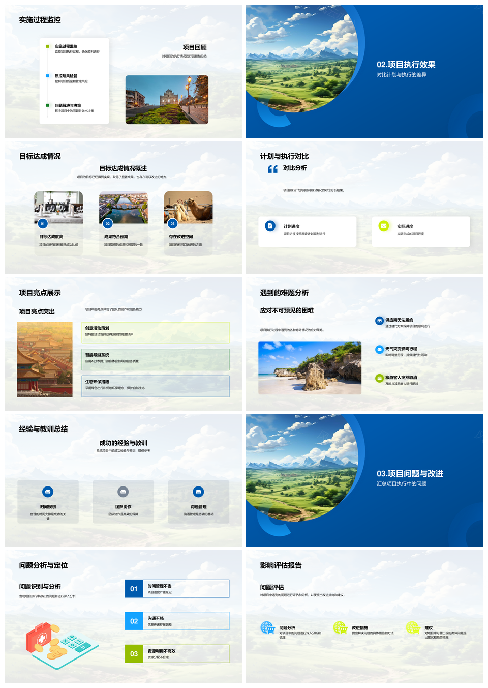 这是一张旅游项目成果回顾与策略展望PPT模板,包含旅游项目、成果、回顾、策略、展望等主题内容,也可用作旅游项目成果回顾、旅游项目成果、项目成果回顾、成果回顾策略、回顾策略展望、旅游项目、项目成果、成果回顾、策略展望、旅游策略、项目策略、成果策略、项目展望、成果展望、回顾策略等PPT场景使用。 风云办公提供的旅游项目成果回顾与策略展望PPT模板,下载格式为pptx,一共30页,作品中文字及图均可以修改和编辑,图片更改请在作品中右键图片并更换,文字修改请直接点击文字进行修改。
