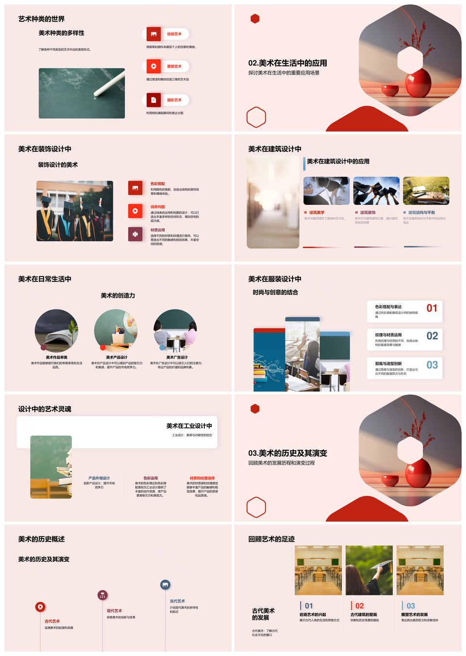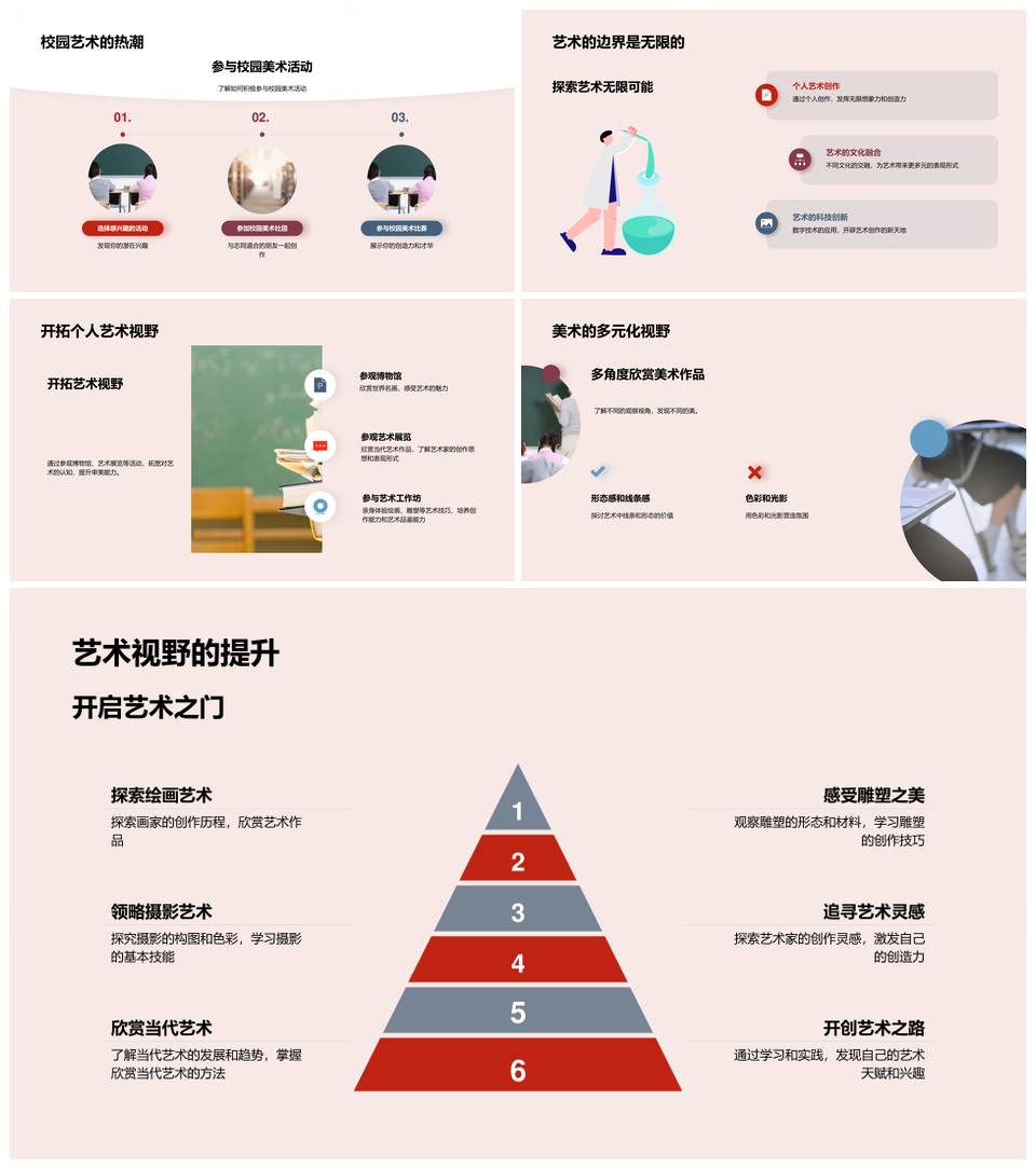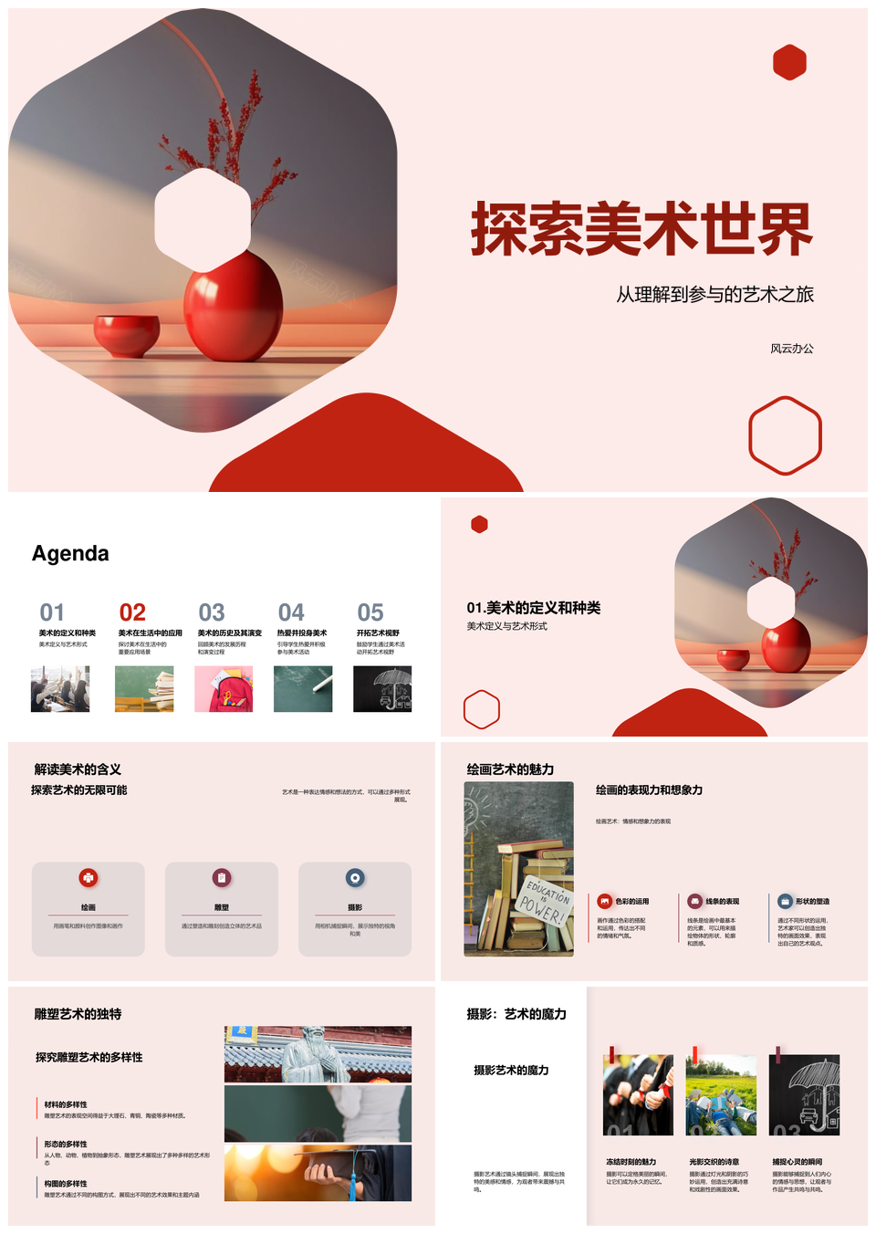 这是一张美术艺术绘画雕塑摄影装饰建筑设计史探析PPT模板,包含美术、艺术、绘画、雕塑、摄影、装饰、建筑设计、史探析等主题内容,也可用作美术艺术绘画雕塑、艺术绘画雕塑摄影、绘画雕塑摄影装饰、雕塑摄影装饰建筑、摄影装饰建筑设计、装饰建筑设计探析、艺术装饰建筑设计、美术艺术雕塑摄影、雕塑装饰建筑设计、艺术摄影装饰建筑、建筑设计探析、装饰建筑探析、美术艺术雕塑、艺术绘画装饰、雕塑摄影装饰等PPT场景使用。 风云办公提供的美术艺术绘画雕塑摄影装饰建筑设计史探析PPT模板,下载格式为pptx,一共33页,作品中文字及图均可以修改和编辑,图片更改请在作品中右键图片并更换,文字修改请直接点击文字进行修改。