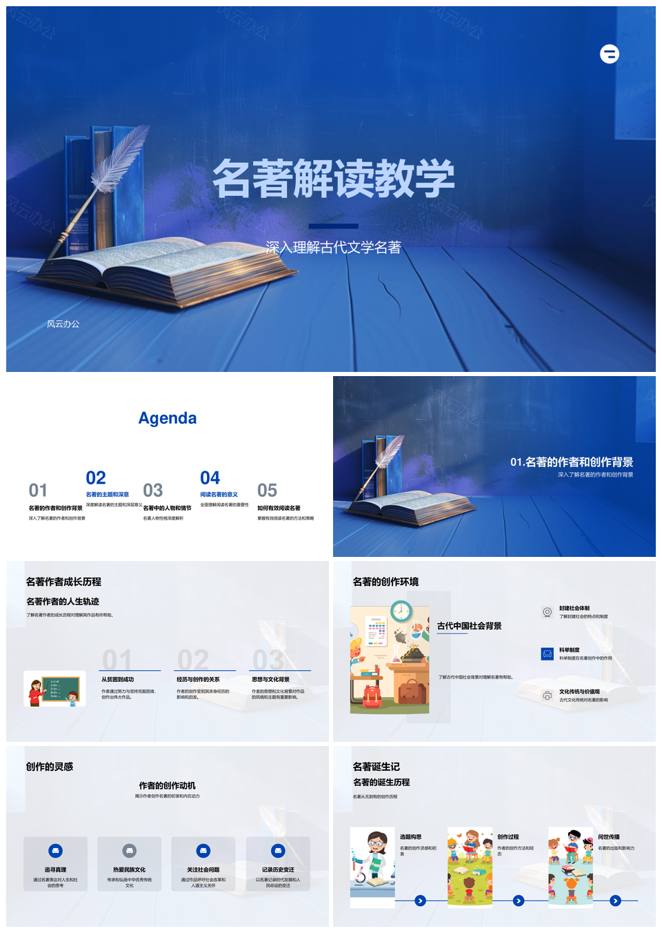 古代文学名著教学解析创作背景主题人物分析PPT模板推荐