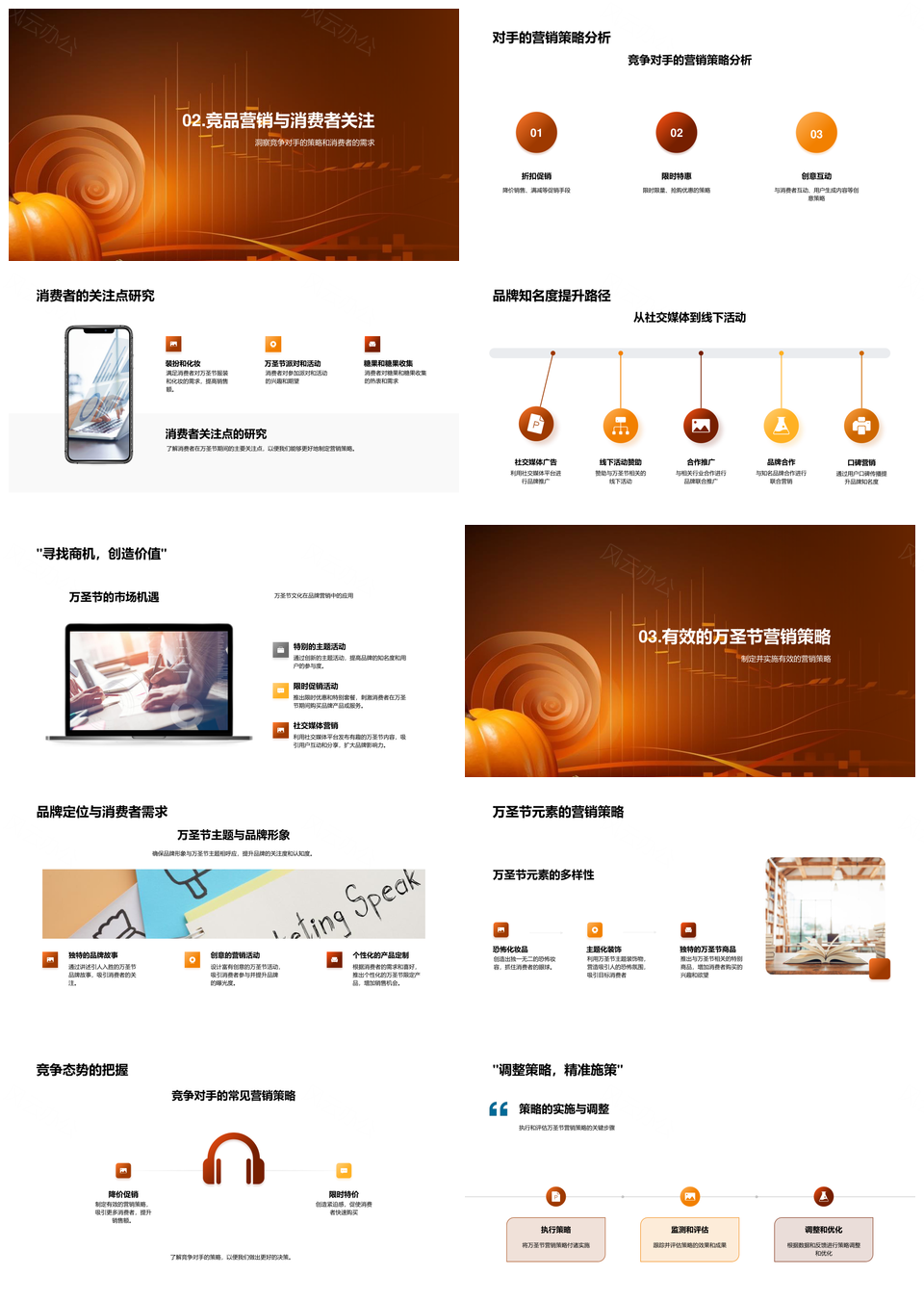 这是一张万圣节营销策略历史文化与品牌实战解析PPT模板,包含万圣节、营销策略、历史文化、品牌实战、解析等主题内容,也可用作万圣节营销策略历史文化品牌实战解析、万圣节营销策略历史文化解析、万圣节历史文化品牌实战解析、营销策略历史文化品牌实战解析、万圣节营销策略品牌实战解析、万圣节营销策略历史文化、万圣节营销策略品牌实战、万圣节营销策略解析、万圣节历史文化品牌实战、万圣节历史文化解析、万圣节品牌实战解析、营销策略历史文化品牌实战、营销策略历史文化解析、营销策略品牌实战解析、历史文化品牌实战解析等PPT场景使用。 风云办公提供的万圣节营销策略历史文化与品牌实战解析PPT模板,下载格式为pptx,一共28页,作品中文字及图均可以修改和编辑,图片更改请在作品中右键图片并更换,文字修改请直接点击文字进行修改。