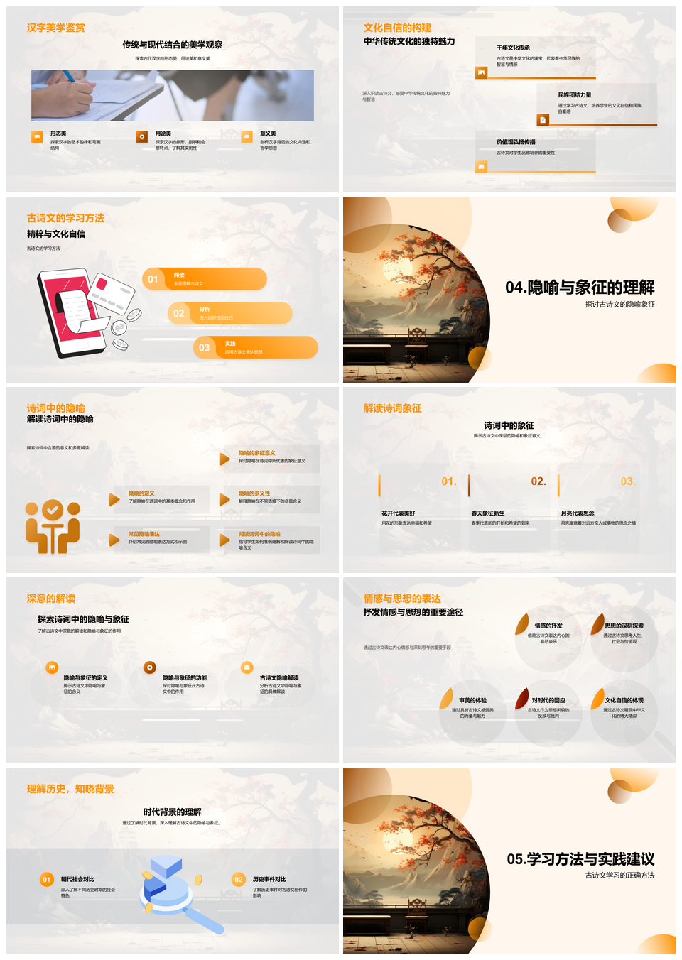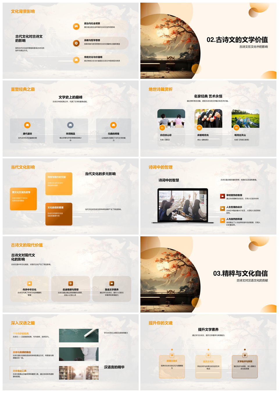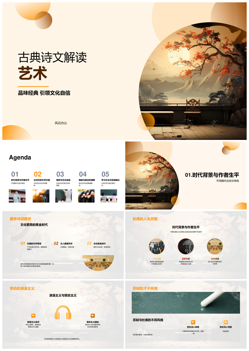 风云办公提供的高中古典诗文古代卷轴解读艺术PPT模板,下载格式为pptx,一共33页,作品中文字及图均可以修改和编辑,图片更改请在作品中右键图片并更换,文字修改请直接点击文字进行修改。