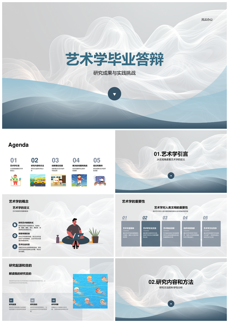 艺术学毕业答辩研究起源方法数据实践挑战理论创新PPT模板推荐