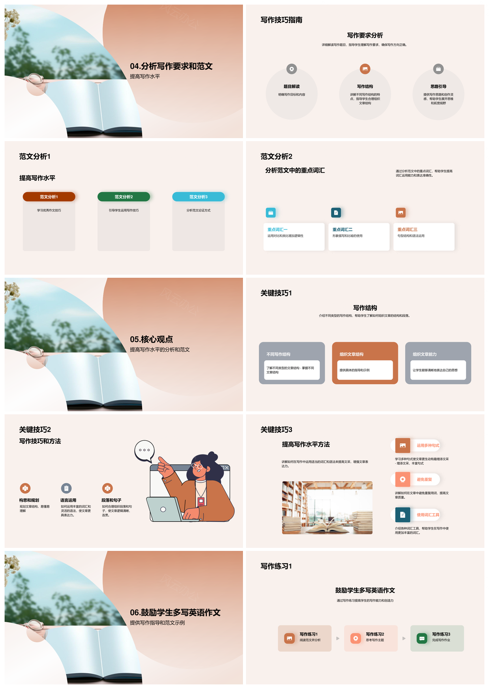 高一英语写作指导教师学生词汇语法书籍PPT模板