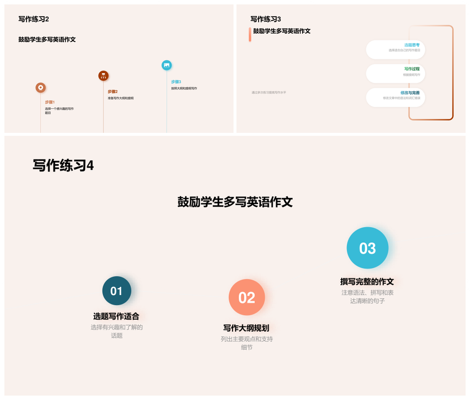 高一英语写作指导教师学生词汇语法书籍PPT模板推荐