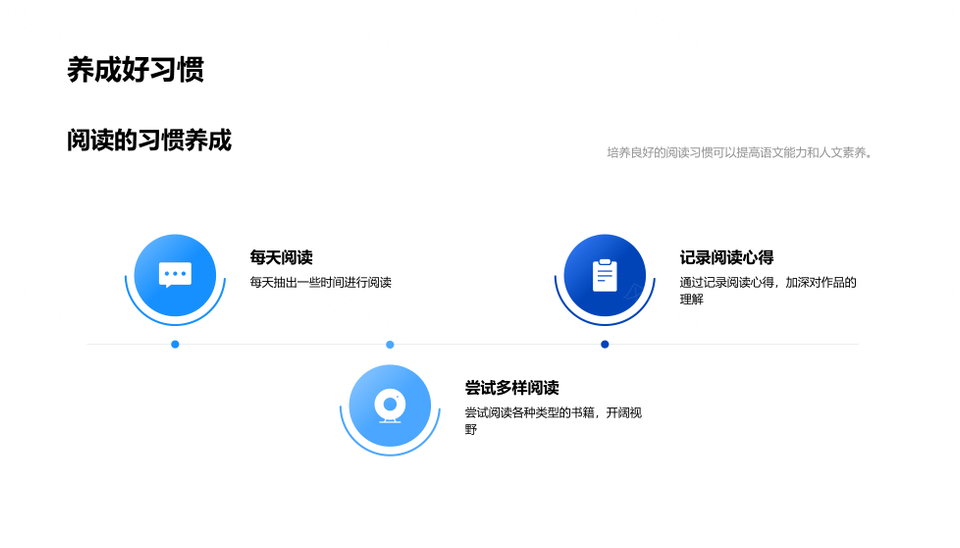 这是一张阅读积淀成长知识文化态度培养PPT模板,包含阅读、积淀、成长、知识、文化、态度、培养等主题内容,也可用作阅读积淀成长知识文化、积淀成长知识文化态度、成长知识文化态度培养、阅读积淀知识文化、积淀知识文化态度、知识文化态度培养、阅读积淀成长知识、积淀成长知识文化、成长知识文化态度、知识文化态度培养、阅读积淀、积淀成长、成长知识、知识文化、文化态度等PPT场景使用。