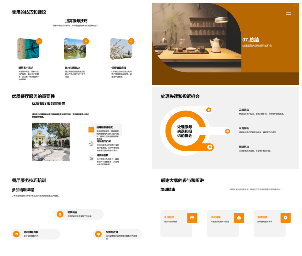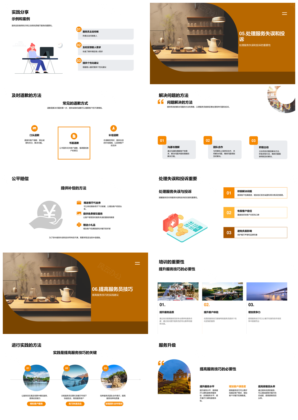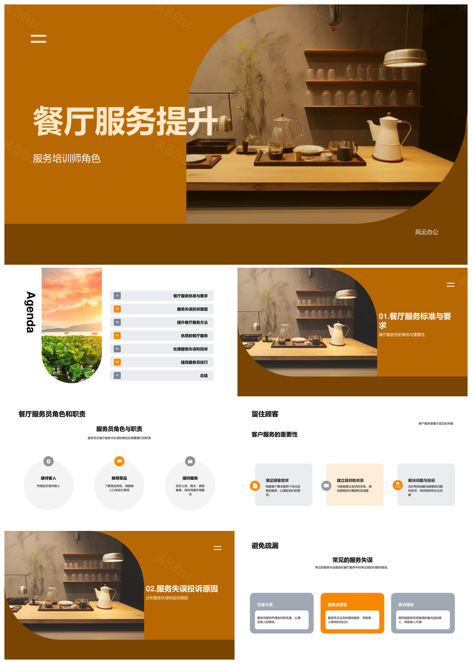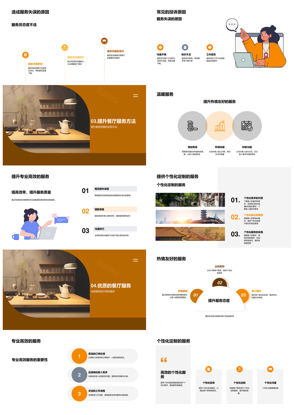 风云办公提供的餐厅服务培训与投诉处理优化方法PPT模板,下载格式为pptx,一共34页,作品中文字及图均可以修改和编辑,图片更改请在作品中右键图片并更换,文字修改请直接点击文字进行修改。