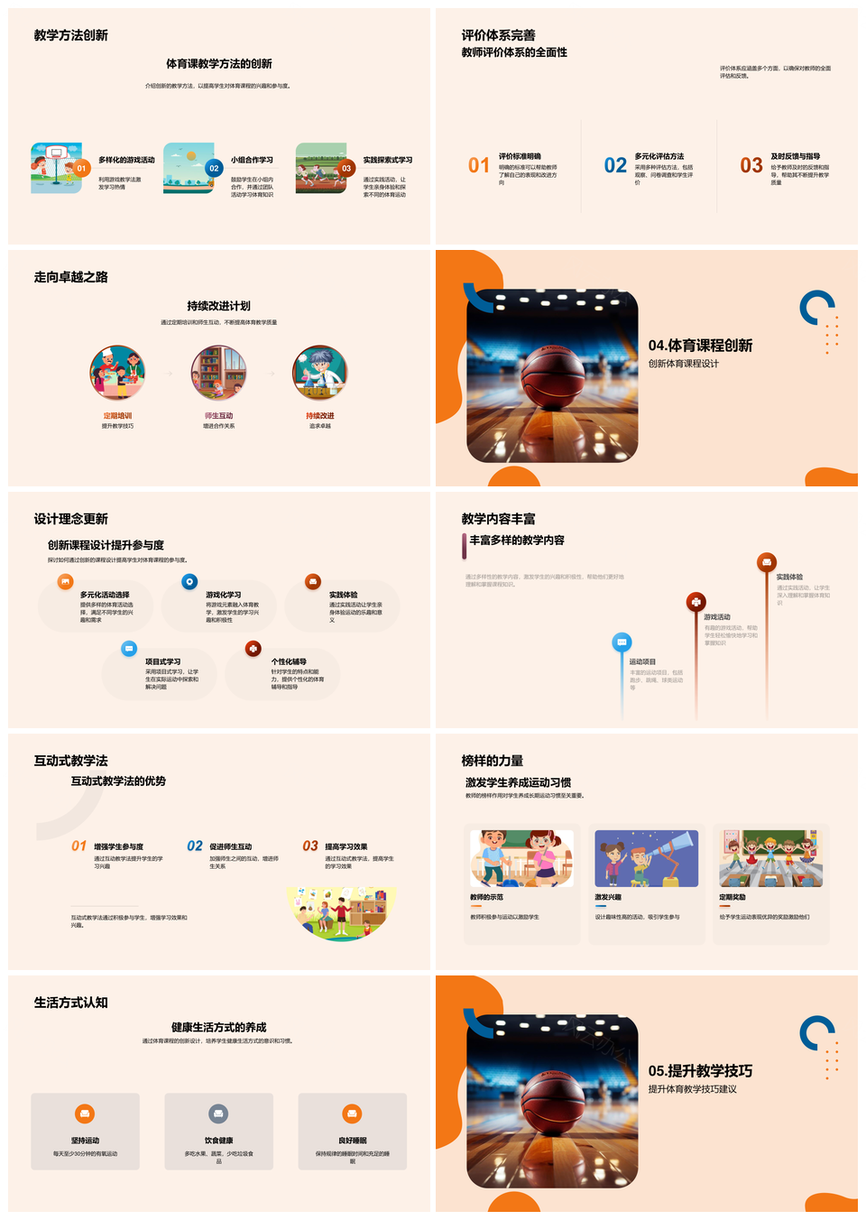 这是一张健康体育专业培训助学生发育篮球教学提升PPT模板,包含健康体育、专业培训、学生、发育、篮球教学、提升等主题内容,也可用作健康体育专业培训、体育专业培训学生、健康体育篮球教学、体育专业培训、专业培训学生、篮球教学提升、健康体育培训、健康体育篮球、体育篮球教学、专业培训篮球、培训篮球教学、健康体育、体育专业、专业培训、篮球教学等PPT场景使用。 风云办公提供的健康体育专业培训助学生发育篮球教学提升PPT模板,下载格式为pptx,一共33页,作品中文字及图均可以修改和编辑,图片更改请在作品中右键图片并更换,文字修改请直接点击文字进行修改。