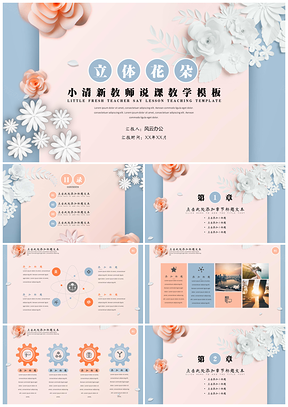蓝色简约小清新唯美教育教学教师说课课件PPT模板