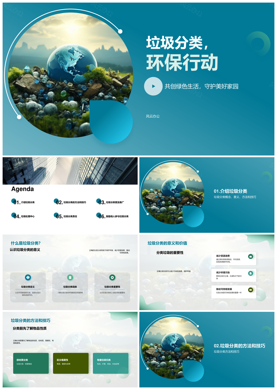 风云办公提供的垃圾分类志愿行动护地球正确回收PPT模板,下载格式为pptx,一共27页,作品中文字及图均可以修改和编辑,图片更改请在作品中右键图片并更换,文字修改请直接点击文字进行修改。
