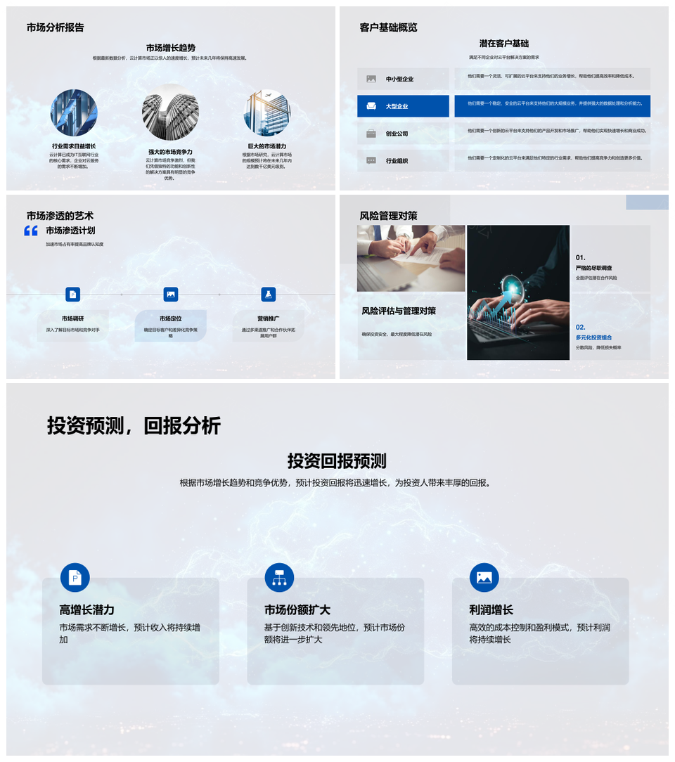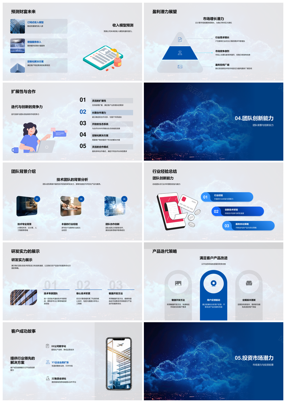 这是一张云计算商业路演风投技术创新市场增长成本效益PPT模板,包含云计算、商业、路演、风投、技术、创新、市场、增长、成本、效益等主题内容,也可用作云计算商业路演风投、商业路演风投技术、路演风投技术创新、风投技术创新市场、技术创新市场增长、创新市场增长成本、市场增长成本效益、云计算技术创新市场、云计算商业技术创新、商业路演技术创新、路演风投市场增长、风投技术成本效益、技术创新成本效益、云计算市场增长效益、商业成本效益创新等PPT场景使用。 风云办公提供的云计算商业路演风投技术创新市场增长成本效益PPT模板,下载格式为pptx,一共33页,作品中文字及图均可以修改和编辑,图片更改请在作品中右键图片并更换,文字修改请直接点击文字进行修改。